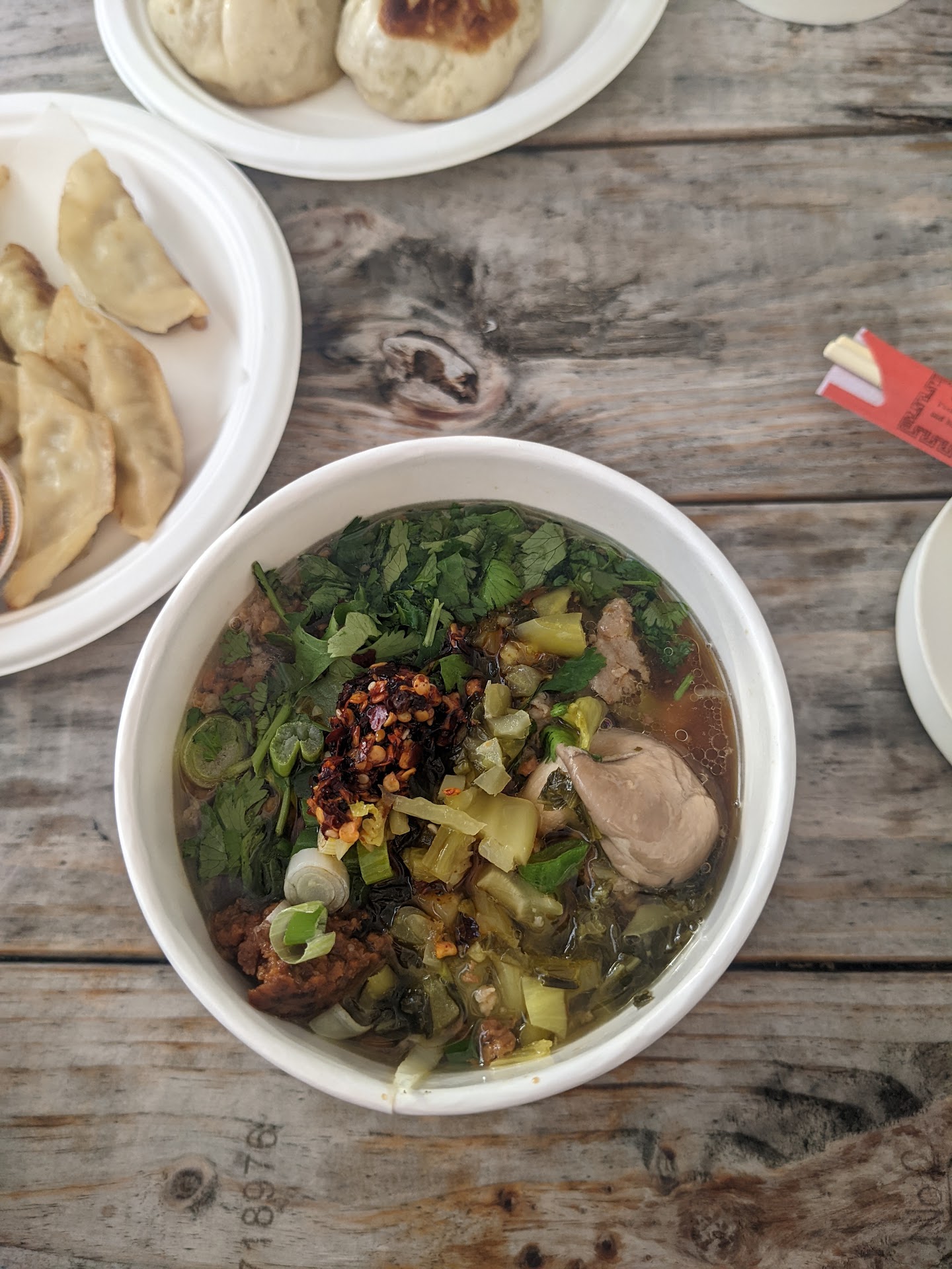 First time trying, came here based on the reviews, we ordered the dumplings, baos, spicy pork noodle soup, and donuts