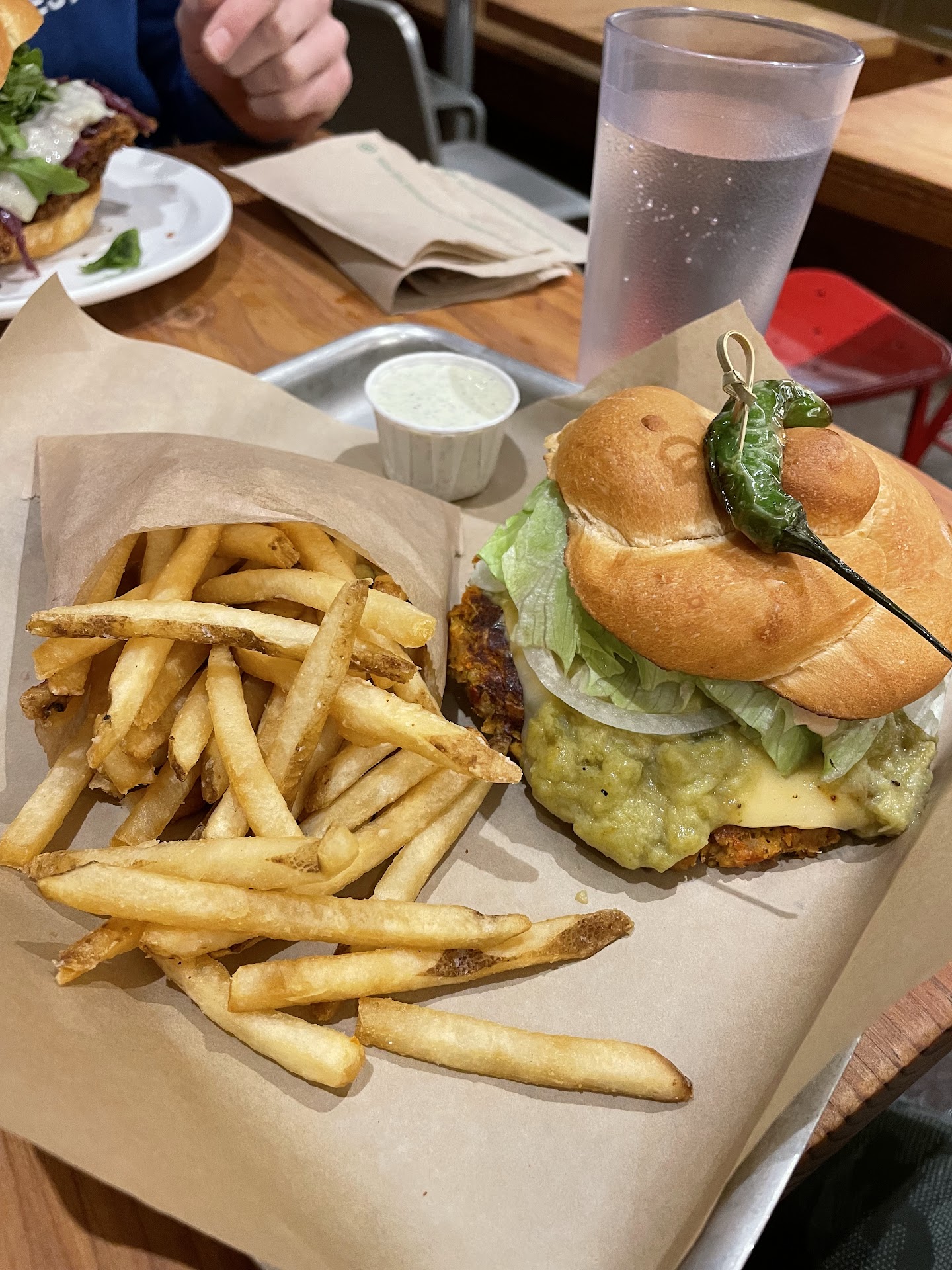 My family and I also noticed how much the portion sizes have shrunk. This is especially noticeable with the fries. I love smash burgers, and I appreciate that they are smushed thin so they cook fast and get a flavorful crust. But my mom's burger had two patties that were so extremely thin, they were dry, paper-thin meat crisps. Comparing it to burgers I've ordered in the past (again, around 6+ months ago before the change), it appeared as if the amount of beef was halved, but still smashed to match the diameter of the bun.