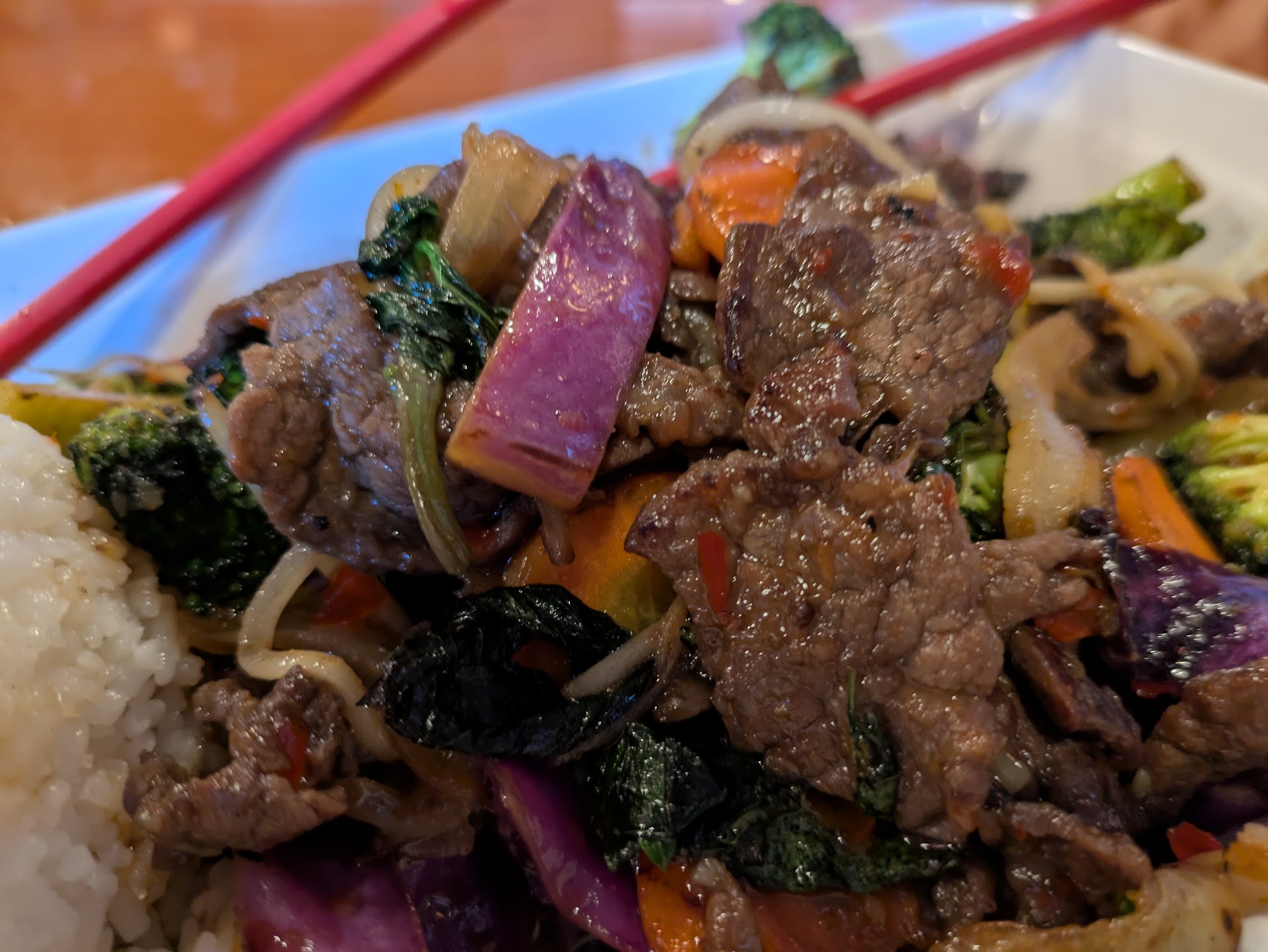 Read moreI've overlooked this place because there's a superbThai restaurant just across the parking lot. but today I wanted to try something new and I am just thrilled. I got the bulgogi beef stir fry in the sweet basil and it does have a good sauce and the vegetables are fresh. It's perfectly cooked. I see bean sprouts and carrots onions, broccoli. Every mouthful has just one of the best sauces I've ever had. This is an excellent choice for today. Reasonable prices. Generous portions. Fast service but there was a line. You got to check out the bathrooms. They are gorgeous and clean and fresh smelling. Mom always used to say you can tell what the kitchen's like when you go in the bathroom. This is a superb place. The decor is very refreshing and the music is so appropriate and relaxing. I think I have a new place to stop between my family in Blaine...