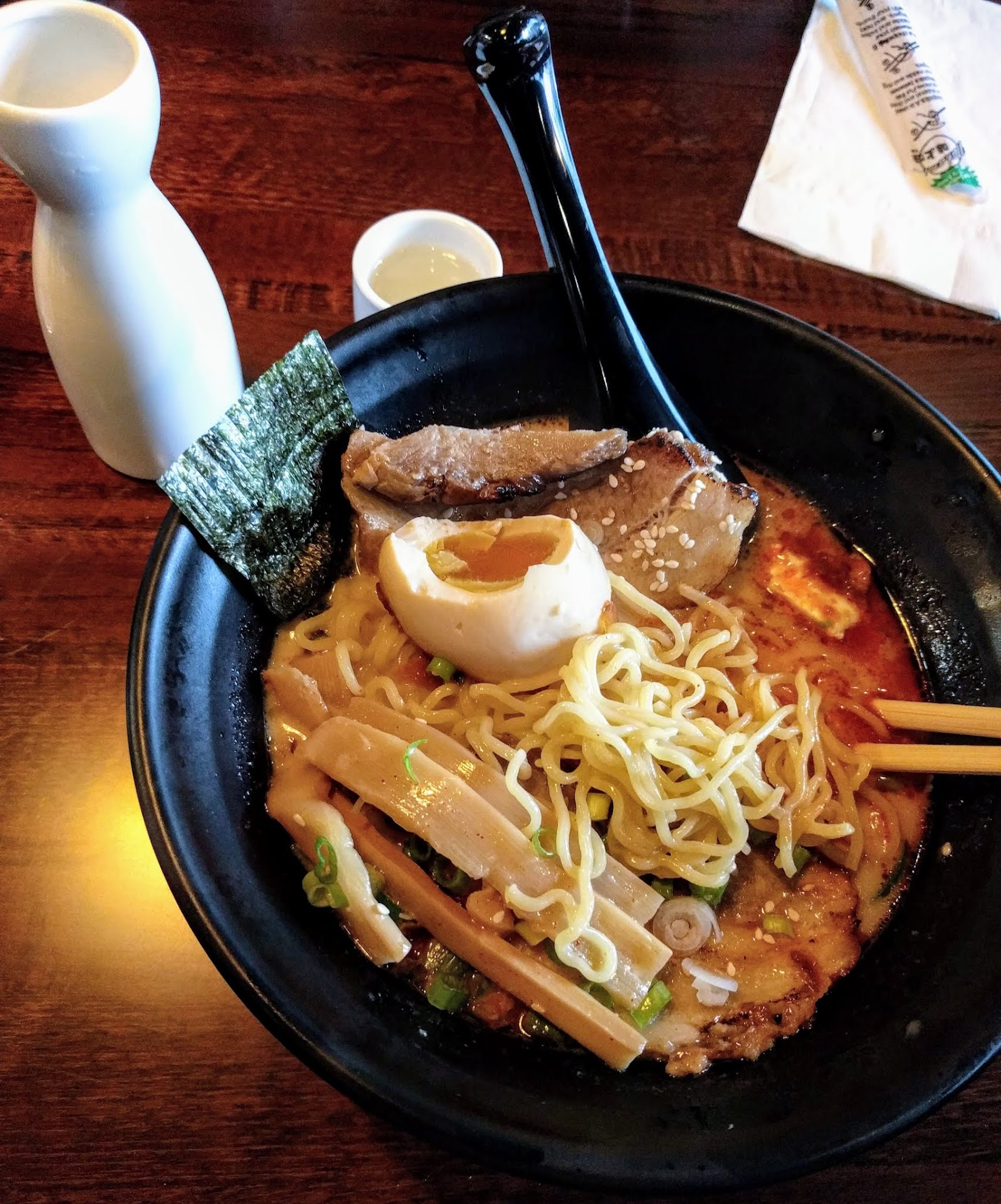 For our main course my wife and I both got the "R8. Teriyaki Chicken Ramen" and with my order I specifically asked for my veggies on the side and they did just that with no questions asked. The Ramen itself was full of flavor and reminded me of my childhood when my mom would make me homemade ramen. The aromatics from the broth was amazing and you can really feel the love they put into the broth, with how clear the broth is and how much flavor it packs. You know the chefs know what they are doing. The noodles were japanese egg noodles and I loved it, it wasn't over cooked nor was it undercooked. Just right. 10/10 would come back here again and will definitely try the sushi next time I come. I was so happy with my meal that I...