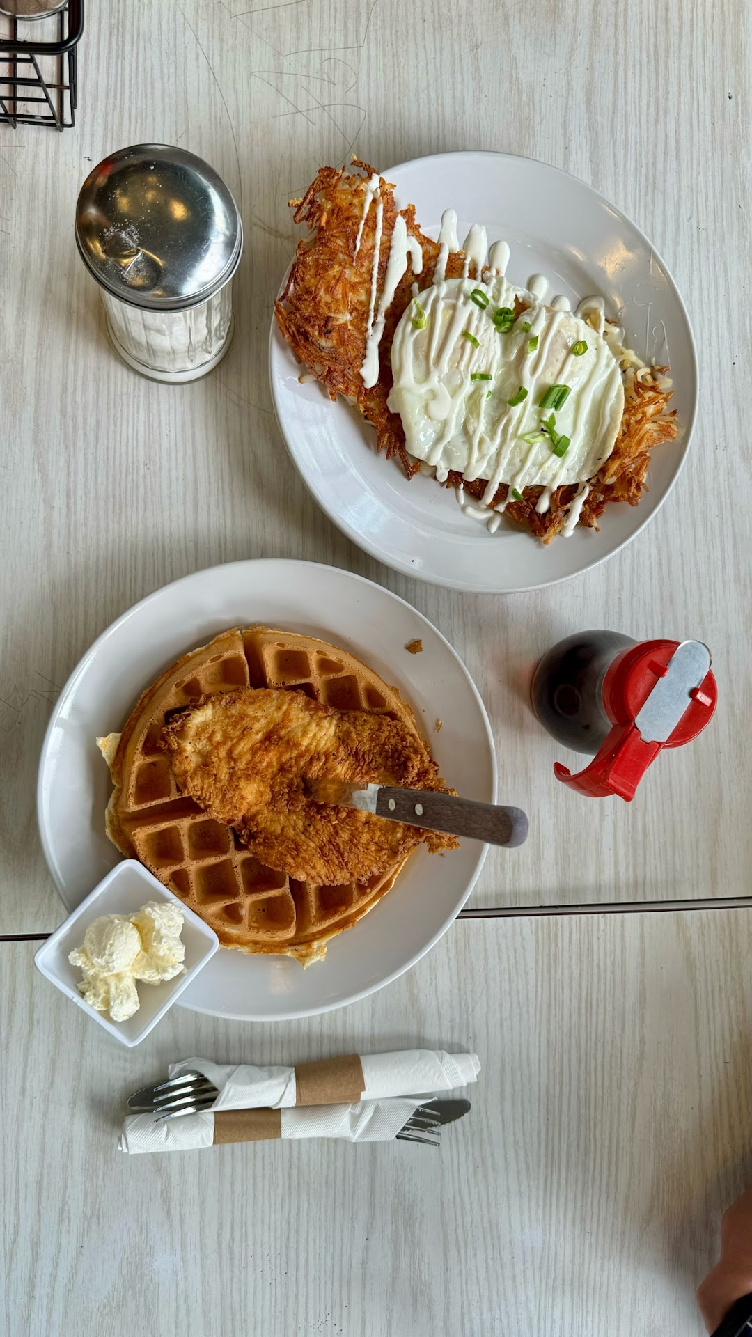 Read moreI’ve been coming here for a long time. It was my first time sitting at the long table with a bunch of chairs, I came there with 3 friends. We got served pretty fast. Food was good but when we tried to ask for silverware for my friends salad, our server, Cora had some attitude rolling her eyes. One of my other friends asked her if she could place another order and then she continued to walk past us for 10 minutes so we asked again and she says it’s gonna take 45 minutes in a rude tone voice. The food did not take 45 minutes. It took 15 minutes and then 15 minutes of it sitting there she came and asked if we wanted our checks I said is that their food and then she grabbed their food and set it down next to them did not give him any syrup for his chicken and waffles Then she proceeded to let us know that there is an automated tip going to be taken out because we have a group of more than six we had a group of four than two people showed up out of nowhere who we just met. I was telling her that’s bull crap because we were definitely a group of two and two. so she grouped us all as one so she could tip her herself when she deserved no tip at all for her terrible customer service. She practically robbed us for a tip because she knew she didn’t deserve one. When she gave us the checks, she didn’t leave us a pen to sign or anything. After we say something, she says oh yeah, with a smirk on her face. I definitely will not be coming back because of her. Somebody needs to tell that girl she don’t like her job she shouldn’t be doing it!! Just in case her name isn’t Cora Like the receipt says she’s the shorter girl with blondeish dark brown hair with glasses. Also, I’m not sure if there’s a sewer problem going on there but the corner with the pool table smells like...
