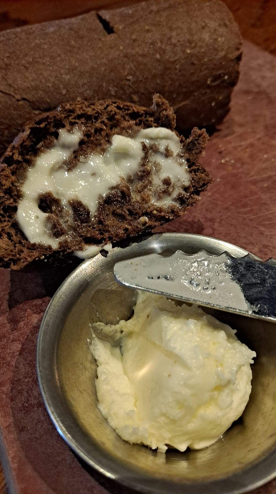 It was that sweet dark- maybe it's pumpernickel- bread that they always had and it took me back to sitting around in the same restaurant, cutting bread and chatting. Back then, the Drover's Platter had steak, ribs, and chicken. Sigh. I remember then...