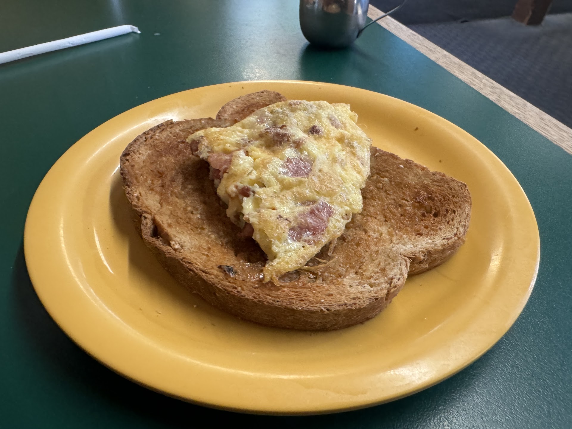 I took the waitress' recommendations and I got the meat lovers omelette which was fluffy and meaty and all around tasty with some nice stringy cheese. I got the hash browns on the side with added garlic and onions for $1 more. This change converted what I'm sure would have been really crispy on the outside and soft on the inside potatoes to something akin to Pad Thai for breakfast. I REALLY enjoyed it but I love Pad Thai. If you don't, get em regular style and save a buck. The rye toast was the big kind, not those teeny end pieces which is a plus in my book as well.