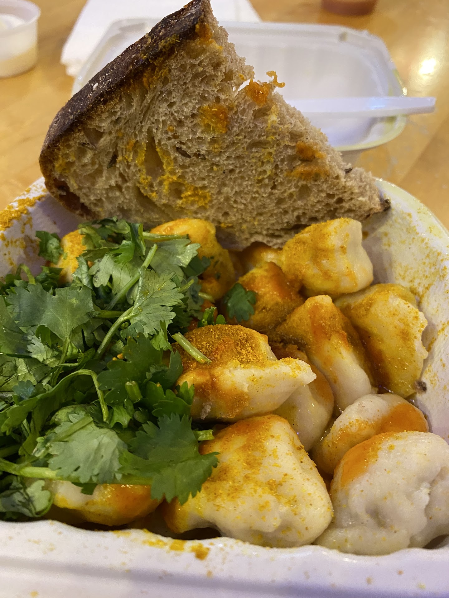 Read moreBellingham's hidden gem right here! The only item on their menu is dumplings, and for good reason. These dumplings are so good that I regularly return anytime I'm passing through Bellingham to satisfy my craving. You get the option of all meat, all potato or half and half bite-sized pieces of heaven tossed in sauce and garnished with their house seasoning and cilantro. They even give you a piece of rye bread to soak up all the sauce. Served with your choice of sour cream, hot sauce and/or vinegar on the side. I'm a big sauce girl, so of course I get all 3. I can't recommend this place enough!