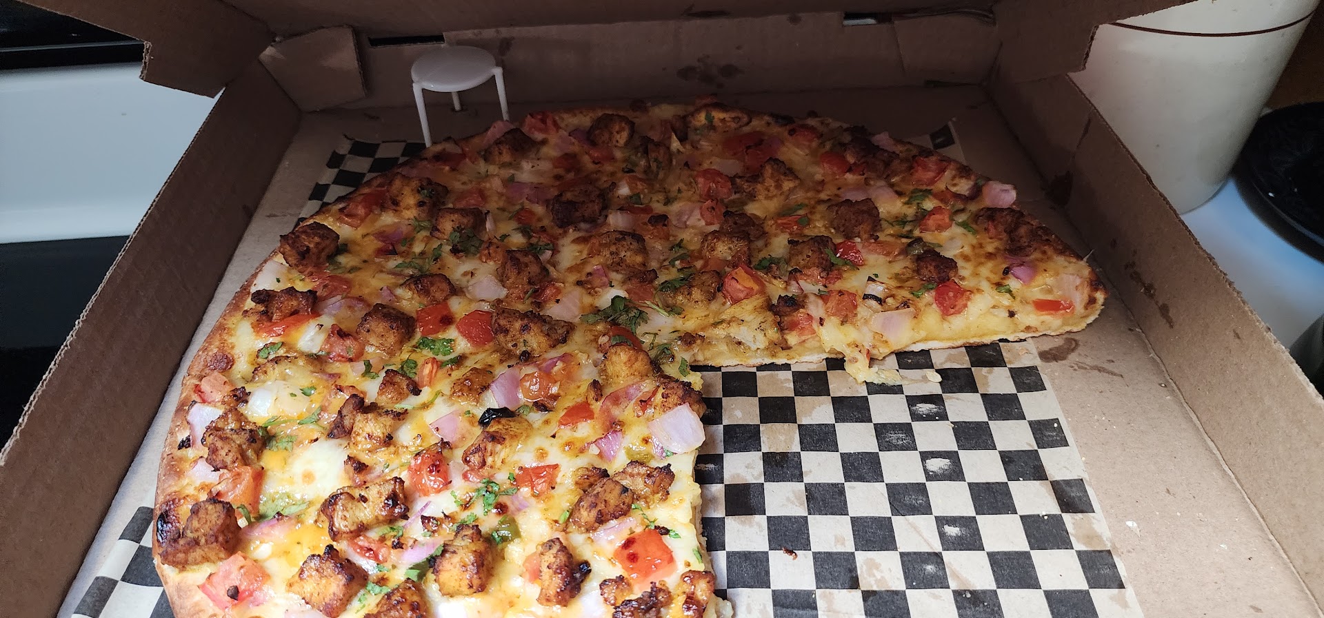 Read moreI ordered the family size pepperoni twist pizza with lamb and cilantro added, an order of 24 boneless buffalo wings with a side of bleu cheese, and an order of seasoned fries.