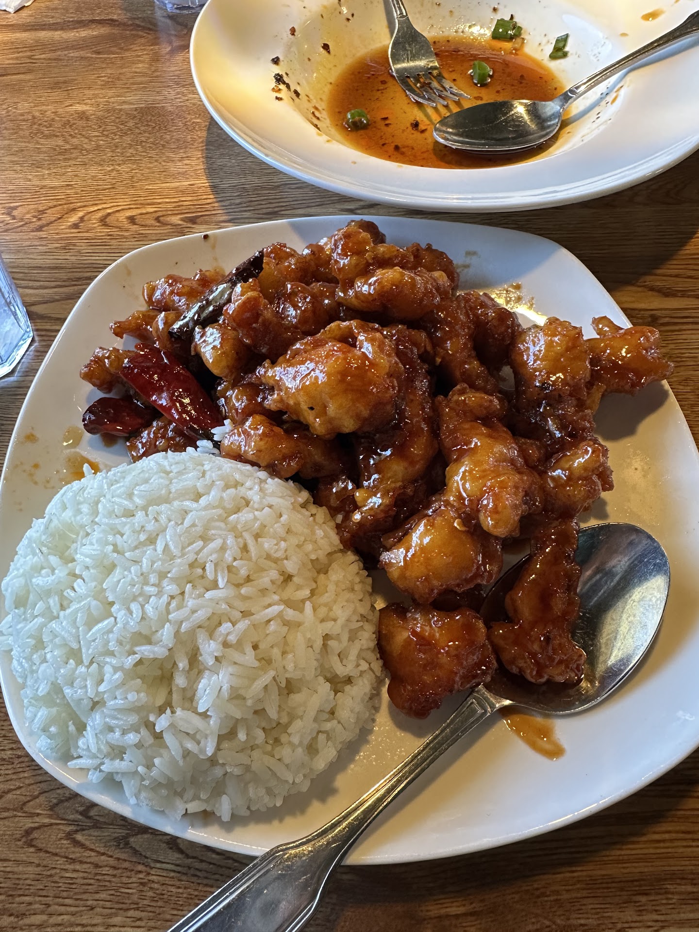 The a La cart menu dishes are family sized and can easily feed 2-4 people ,they come without sides obviously. One side of rice will easily feed two people, so I wouldnt get more than 2 of then for a party of four. We got orange chicken, sweet /sour chicken, and broccoli with tofu. The chicken was nice and crispy and very flavorful sauces, and the broccoli was Al dente and very fresh. Clean bathrooms and clean dining area. Nice and friendly staff, they checked in on us a few times during the meal but mustve got distracted at the end, when we finished eating we waited an extra 15 min for her to come back to ask if we needed boxes. Will consider this place again when...