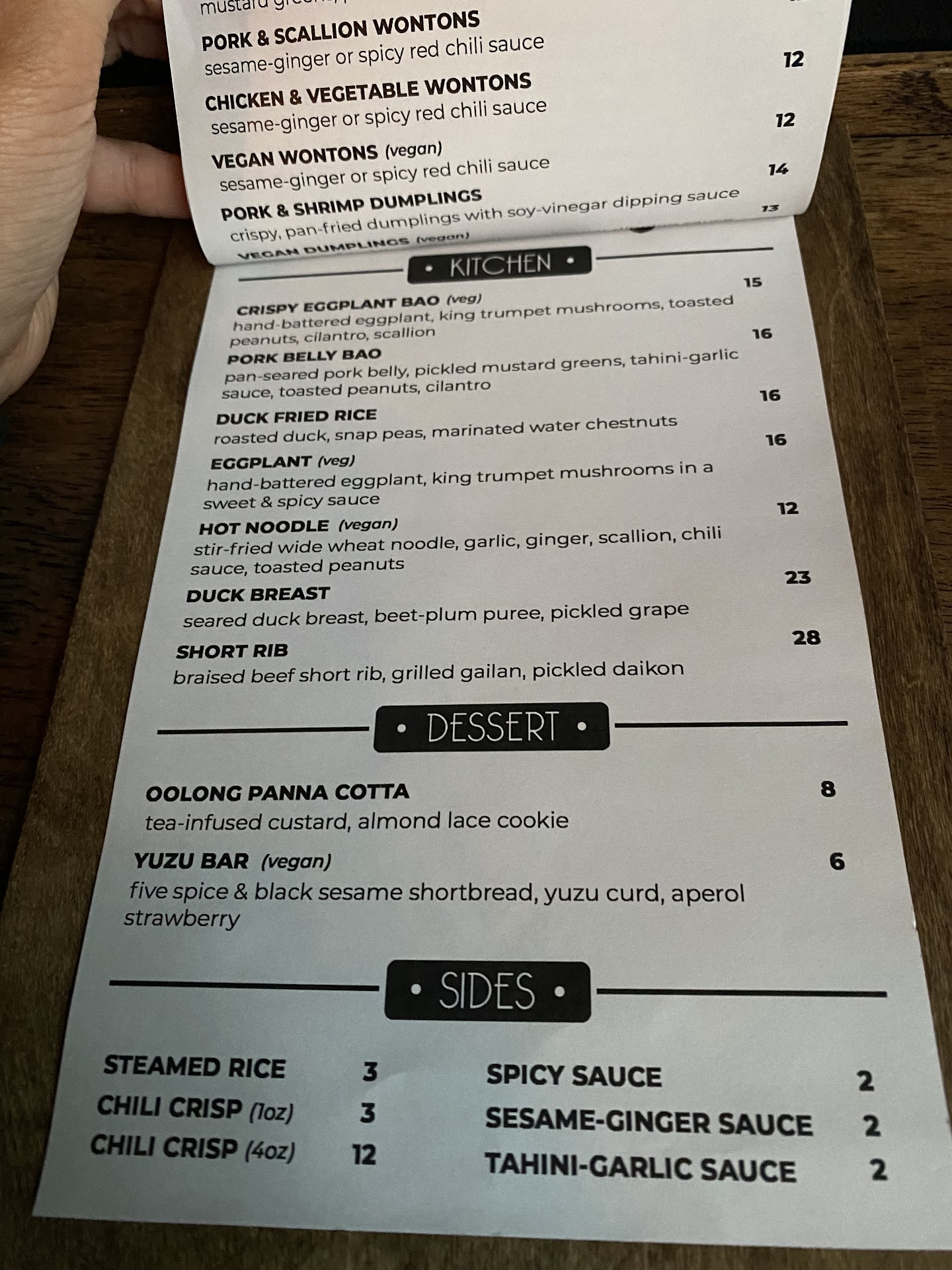 Update: June 2023. As a longtime fan of Red Light, this experience was definitely different, and not in the best of ways. We had been to the old Red Light several times and were big fans. Since it was their first Friday night service in the new place, it was slightly disorganized. Initially, we were served the wrong drinks, which were actually great, but they were supposed to be for the couple behind us. They brought us the correct drinks but took away the first ones (presumably to throw them out), although they could have just left them for us. It was slightly strange. The food was different, and not in a good way. We ordered a bao, a wonton, and char siu to share between the two of us. Additionally, they didn't offer a choice of small or large portions of wontons, but they still charged for the large portion and served a small one. The bao was a sad sight; it was made with pork belly which wasn’t the best flavor. We also miss the old toppings with the bao, like the pickled cucumber and carrots. Now it has mustard greens and a different sauce. Furthermore, the bao no longer comes with a salad, which is very disappointing. The salad was a standout before and is sorely missed. The menu now has a lot of fried items that don't seem to fit the Red Light vibe. The food now comes out as it’s prepared and not all together, which is totally fine with us, but it did take about an hour for us to get our char siu. We did appreciate the addition of more vegetarian/vegan options. The drinks were great, both the ones we initially received and the correct ones. Our server, Ryan, was accommodating and listened to our suggestions. The space has a mid-century modern feel (trendy?). The vibe is different. Change can be good, but this was a big change, and not a good one. Red Light used to be our go-to spot for so many reasons, but this experience has changed my mind. We were quite disappointed this time around. We hope things change here soon. We miss the old Red Light.