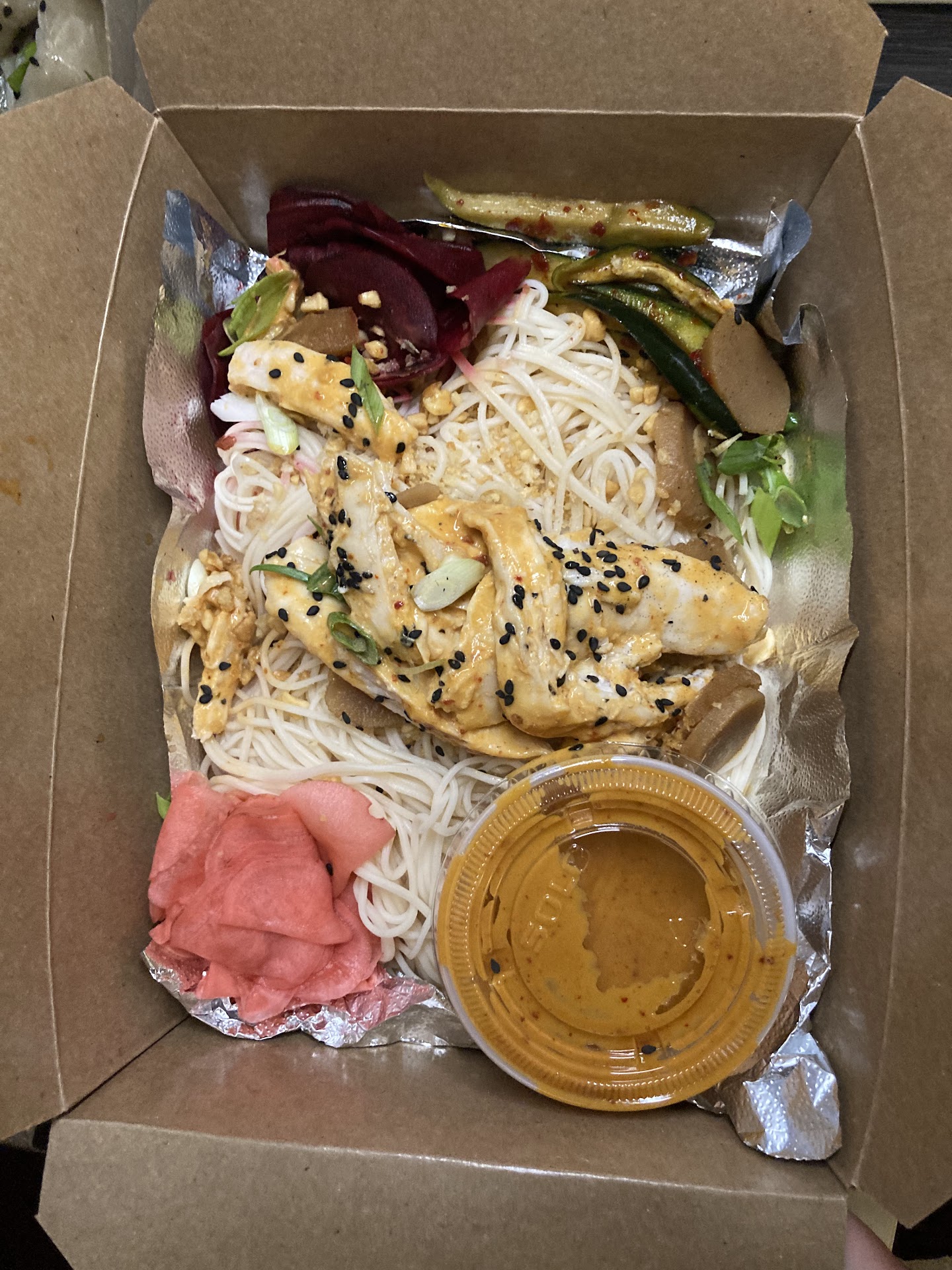 Food wise, their offerings are just so good. I literally cannot pick one thing, so I will end up getting everything which I can then eat for the next two or three days. This time I added the Staff Sandwich to my order because I hadn’t noticed it before, being too focused on cold sesame noodles, and boy was I happy I did. It is so good, just like everything else. And now I see they have pork rice bowls and vegan bao? Like I’m legit just going to order the whole menu every time because I want it all. Also the sauce to dip your wontons in??! I don’t know what it is but I could probably chug it. Like pour it in a tall glass and I’d drink it down. So. Good.