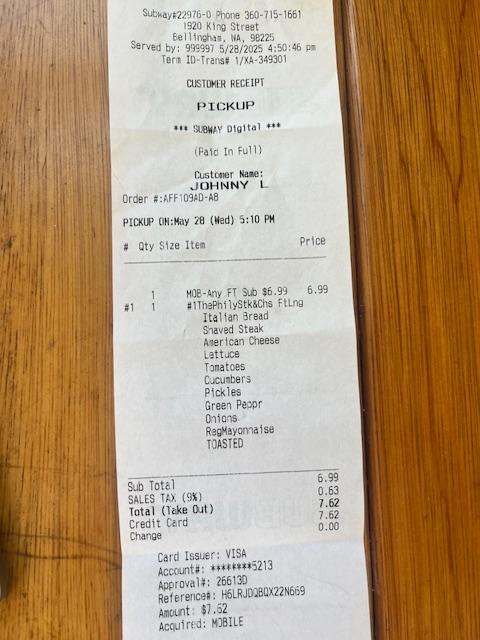 It would be hard to describe how this place can stay in business. What I have found, is you MUST order in person and make sure you watch them prepare it. If you order from the app, they will put ZERO meat on it. They figure you pick it up to go, there is no email to complain, and they barely speak English so no use in speaking to them about the issue. I ordered the Philly Steak and Cheese 5/28/25 from the app as I was given a deal for $6.99 for a foot long. Added lettuce, tomatoes, peppers and pickles. Got it, and basically no meat. Not even 1 layer of meat. Just a few tiny bits spread around. This is the 2nd time I ordered from the app and same result. Tried calling and they either don't, or act like they don't speak English. Absolutely worst value and zero customer service. Im done with eating at Subway and will patron other...
