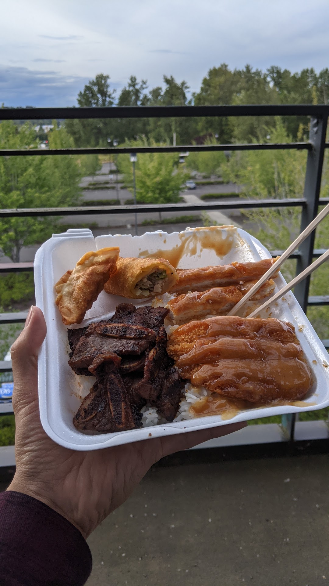 We ordered 2 different combos so we could get a good variety of food. Beef kalbi and chicken katsu, came with a egg roll and some gyoza. And beef and chicken teriyaki. The kalbi was well marinated and flavorful. The katsu had a great fried crunch and the yum yum sauce or something similar was drizzled overtop. The beef and chicken teriyaki was so soft and tender; they both had a good grill and a thick teriyaki sauce.