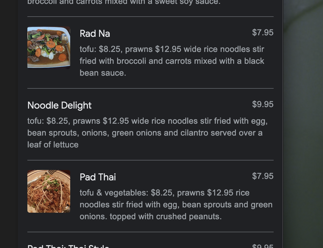 I just ended up splitting my girlfriend’s meal (Thai style pad thai) which was decently good. But the 1 meal, a soda, and a Thai tea cost like $28 before tip which is nuts for what it was.