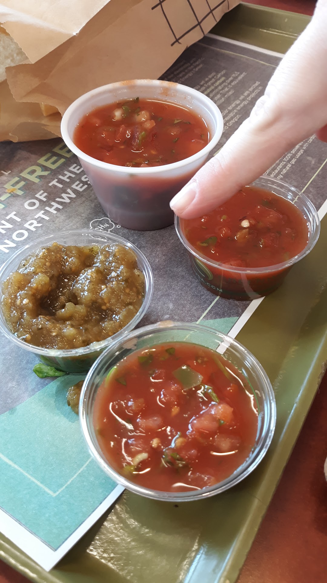 First, regarding their environmentally friendly claims: compostable packaging is great - even if we don't have access to composting it will at least break down faster in the landfill, but Taco Time NW completely misses the REDUCE part of the equation. I am constantly given masses of napkins even when I ask to be given none. Paper is a renewable, but finite resource. If you use it faster than the trees can be grown to replace it that is a problem. Also the decomposing napkins contain carbon which is being released back into the atmosphere. And most of the napkins are just wasted. For goodness sake, please educate your franchisees and employees on this. Almost no one needs dozens of napkins (or even ten which I got this time after asking for none). This also drives up cost.
