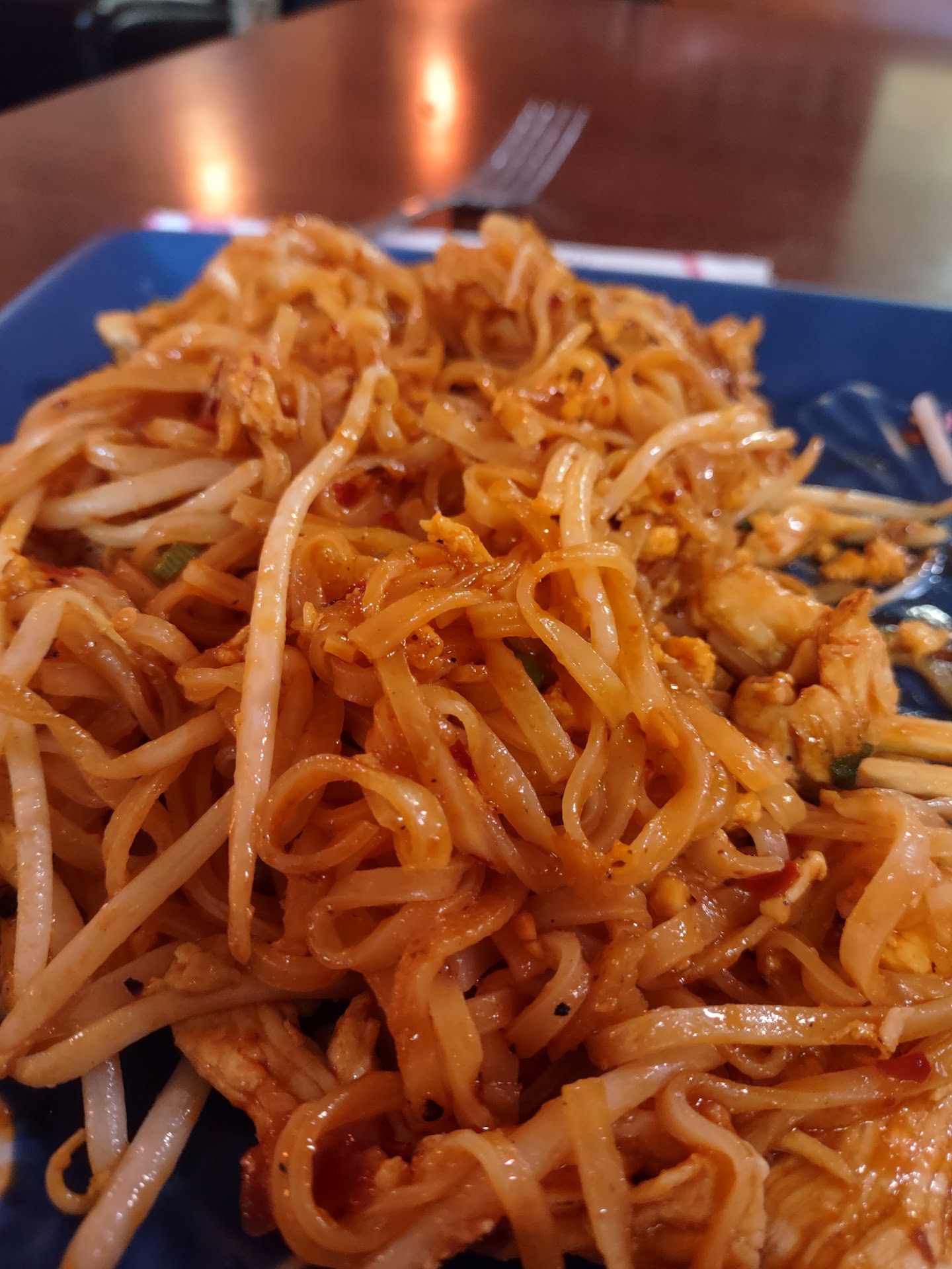 I got the Pad Thai, as any white person would, and was severely disappointed with what I got. It was like the Pad Thai equivalent of putting ketchup on noodles and calling it spaghetti. The dish was entirely too sweet, with little to none of the intended flavor other than the peanut and chicken. It's like they were trying to appeal to the palate of a two year old, and they should be ashamed to have this dish labeled as "Pad Thai" on their menu. If you are from Thailand, or simply expect something good, don't go here. If you're a 2 year old or maybe some hyper-american who can't handle the slightest bit of flavor, go for it. Anyway. The service was... Okay, it took them a while to get to us while the restaurant only had one other group, and the seat has a giant dent in it, but other than that it was okay. The other dishes we got were also kinda trash, we asked for spicy and the best we got was mouth warming. Probably not going here again and will not...