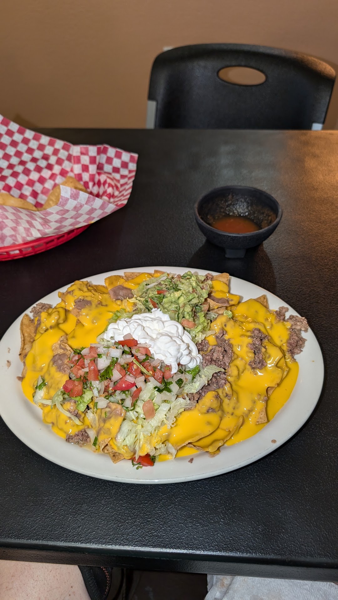 Read moreThought I'd try a place I've never been to for Mexican Food. I am currently using a cane and as I approached the door, it was opened for me by a worker. Good start! Hot sauce and chips were absolutely great! Couldn't put them down. Ended up ordering nachos supreme with ground beef and a lemonade. A platter was brought out to me that would feed 3 people! Only thing missing was some jalapenos but they quickly brought me a side of them. Tons of toppings on these nachos. Not like many places where you have to hunt them down. More than I could eat for sure. The lemonade came in a large cup and I never needed a refill. Spanish speaking people will feel right at home but there was not a language barrier for me (English only) at all. Everyone was pleasant and I will...