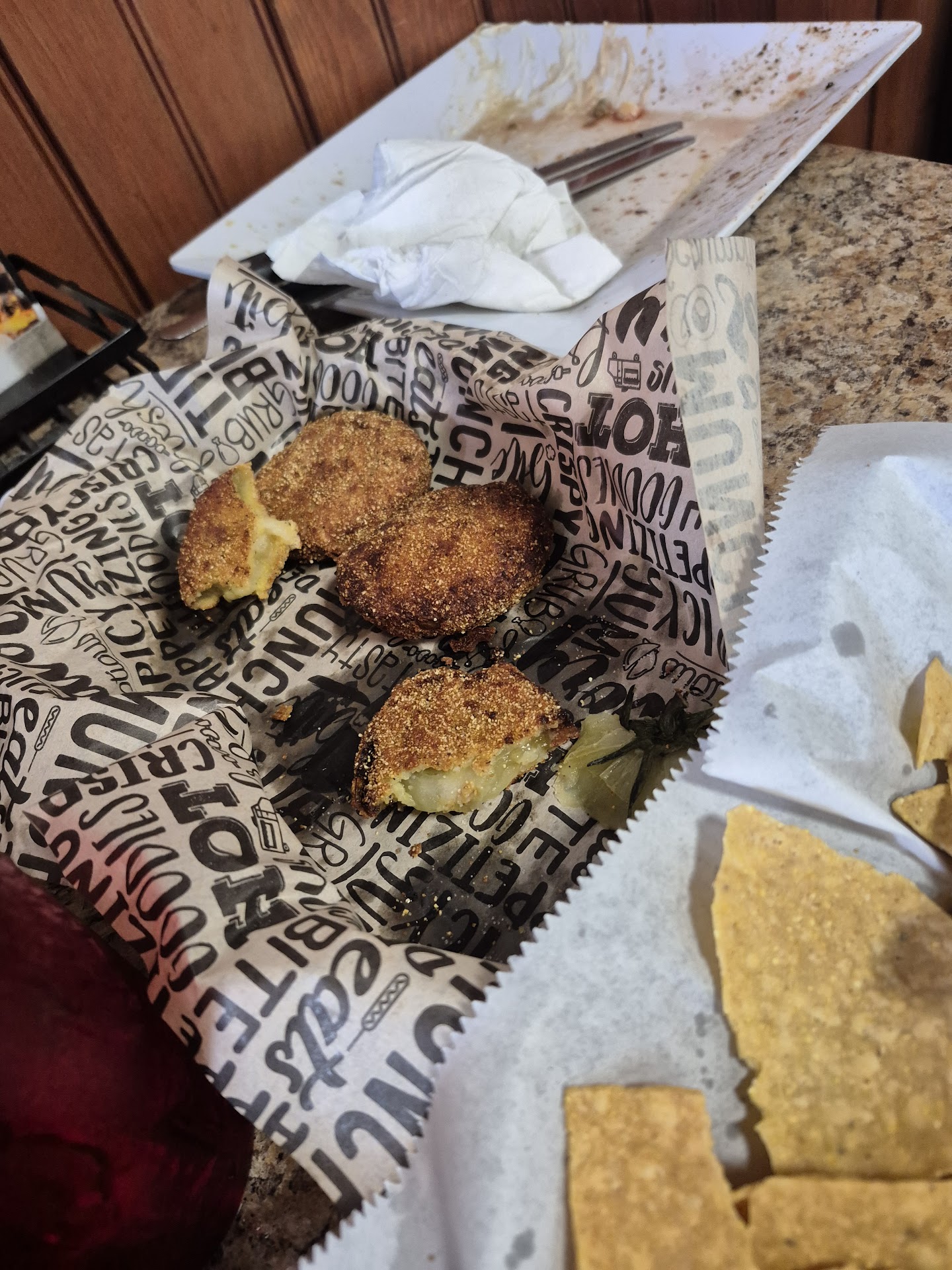 I ate The BLT and 1 of the firecracker shrimps and it was amazing. The BLT was loaded with bacon and it was a full sandwich and flavorful (not just 2 or 3 slices of bacon). The Firecracker Shrimp was a little spicy and had some cole slaw'ish base at the bottom. Comes with 5 good size shrimps and the cole slaw compliments the spicy shrimp. The steak fajitas were great per my wife and son and its a good quantity too. The fried green tomatoes have about 8 or so slices in container with sauce. The Philly Cheesesteak was huge and looked really good.