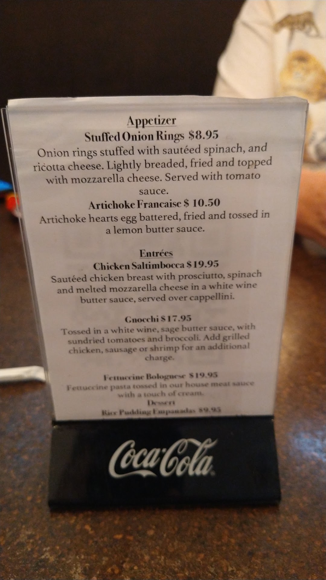 Read moreI ordered the Veal picata with a side of capalini. Veal was over cooked and dry. Bread plates came after the bread. It is strictly a pizza joint now. Lots of hustle and bustle. Wait and bus staff now wear various color dirty T shirts and shorts. Seems that they are looking for the fast turn over of tables. The cooks are definitely just glorified line cooks.No self respecting Chef would let veal like that go out of the Kitchen. It was way better when Vesuvio's was there with Anthony the Chef. Don't go for the dinners. Just pizza and maybe a salad. The Summer tourists won't care though.