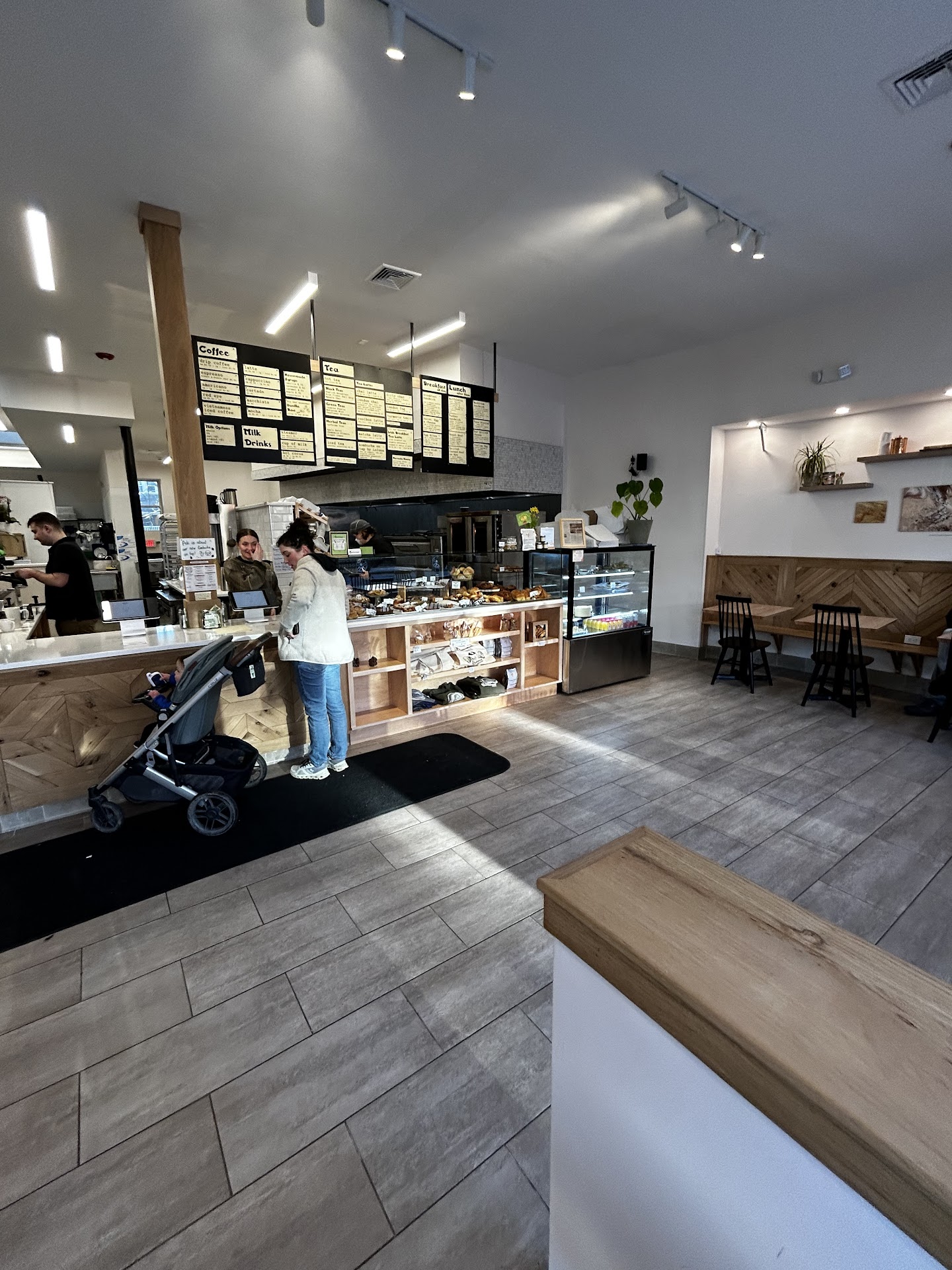 Read moreThis place is new and off to a disappointing start. I’m mentally comparing it to Tatte which this place seems to be aspiring to, but not well. The decor is bland and soulless. The acoustics are not good for conversation; it’s a big open space and sound reverberates across. The booth benches have uncomfortable backs, the tables are too low relative to the benches (not good for a laptop for example), and they’re not bolted down well, so your bench shakes when the person behind you moves. The coffee was fine. The “everything croissant” was good, but the barista/cashier should have asked if we wanted it warmed up. They should also clean the floors under the...