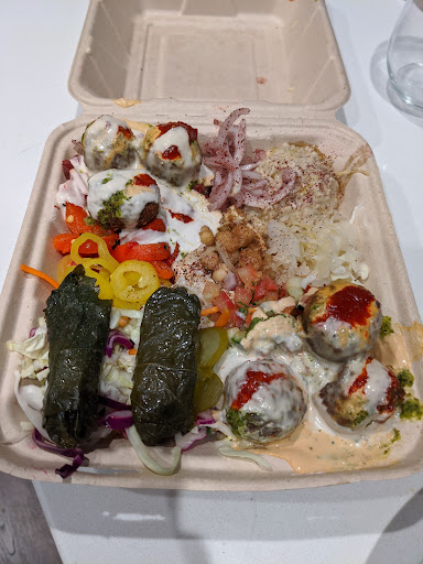 I got the falafelle combo for delivery during COVID. It was HUGE, literally, it lasted me 2-3 meals. The combo was six falafel balls served with hummus, tabbouleh and two pieces of Dolma in a plate with zesty cabbage, beets, sauerkraut, roasted red peppers, house salad, pickled turnips, sumac onions, pickled cucumbers, mild banana peppers & garbanzo beans. It was my dream. I actually don't like tabbouleh, so I asked to sub it out for babaganoush, and they did! The falafel was bright green inside like they ought to be. The dolma were slightly dry and needed a bit more flavor, but there was ample flavor to the hummus, lots of smoke to the babaganoush, and the pickles and accoutrement were all perfect.