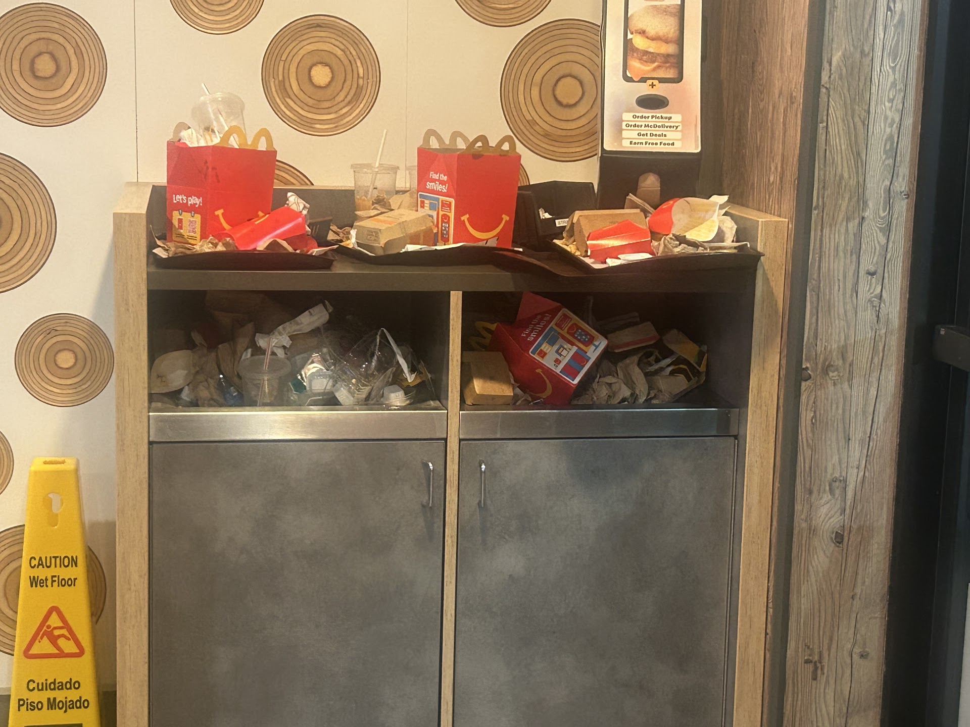 As soon as you step inside, you're greeted by litter scattered across the floor. The trash bins were overflowing, with refuse spilling out and patrons resorting to piling their waste on top of the overstuffed cans. It was impossible to find a proper place to dispose of trash. I documented this with photographs, which I will include in my review.