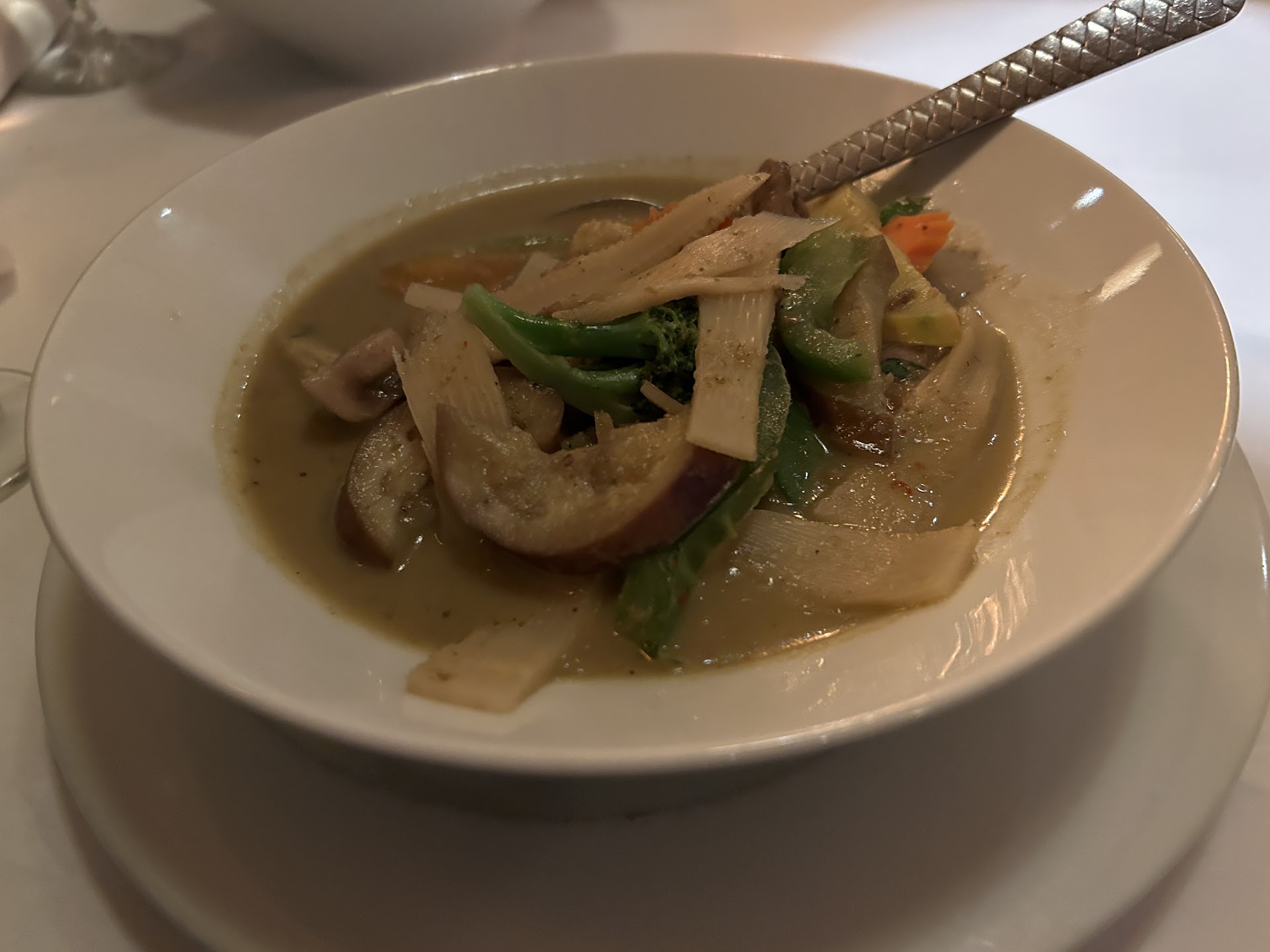 I had their lunch special for $14. Spring rolls, curry puff, glass noodle soup, and pad thai. Overall the experience was mediocre. It says on the menu that there would be two spring rolls ("Spring rolls (2)"), but what came were two cross section pieces of a whole spring roll. You get about a half roll's worth. The pieces were stuffed mainly with cheap lettuce (and you can tell the original roll had loosely wrapped lettuce so they couldn't even be bothered to put a lot of a really cheap ingredient). They each had a piece of what I believed was chicken; the meat was so small I couldn't even taste it. The piece had none of the traditional noodle, basil, cilantro, meat combo (the lettuce used isn't even indigenous to Asia). The curry puff was a small triangle that contained about the same volume of a McDonald's chicken nugget and stuffed with, again, mostly with cheaper ingredients like potatoes. If there was chicken I could not taste it. The glass noodle soup was made with chemical-ly "chicken bouillon". There was barely a mouthful of glass noodles, a not very fresh shrimp, two pieces of tasteless canned mushrooms, and one green bean pod that wasn't trimmed of the fibrous sides. It wasn't even a bowl's worth, maybe a half bowl. It just looked like there was 'more' owing to the bowl that is wide and shallow relative to the quantity of soup. So again, they skimp on premium ingredients, use cheap substitutes, and then skimp on the quantity served of this mostly cheap offering. The pad thai came with three pieces of not fresh shrimp (tail ends had already turned black and texture turning to muh) and loads of noodles. if there was chicken I didn't see any. I could have counted the number of bean sprouts among the mass of noodles. The pad thai would totally not be worth the $10.50 it normally would have cost a la carte. I've had better quality and quantity of premium ingredients (eg, shrimp, chicken) for comparable, if not less, elsewhere in the Boston area. For using mostly cheap ingredients, skimping on serving a fulfilling quantity of even cheap ingredients, using unfresh 'premium ingredients', I'm not impressed. How they make up for the mediocre food is with the ok decor and ambiance. If they served this kind of food in a more cafeteria like setting I doubt it would be much above 4 stars, it would be more around 3.5. In fact I've had better food at places with less stars. what seems like a deal for $14 is really just paying for a lot of mediocrity. I'd rather spend a little more for much better and more premium/traditional ingredients. I'd give the ingredients 2 stars. A lot of cheapness, and unfresh premium ingredients. The dressing for the spring rolls and the pad thai tasted 'traditional' enough. but owing to the over substitution of cheap ingredients it did detract from 'authentic taste.' So I give the taste just under 3 stars. That makes the average just under 2.5 stars, and I'm annoyed enough that they have been getting away with such mediocrity owing to the decor such that I'm going...