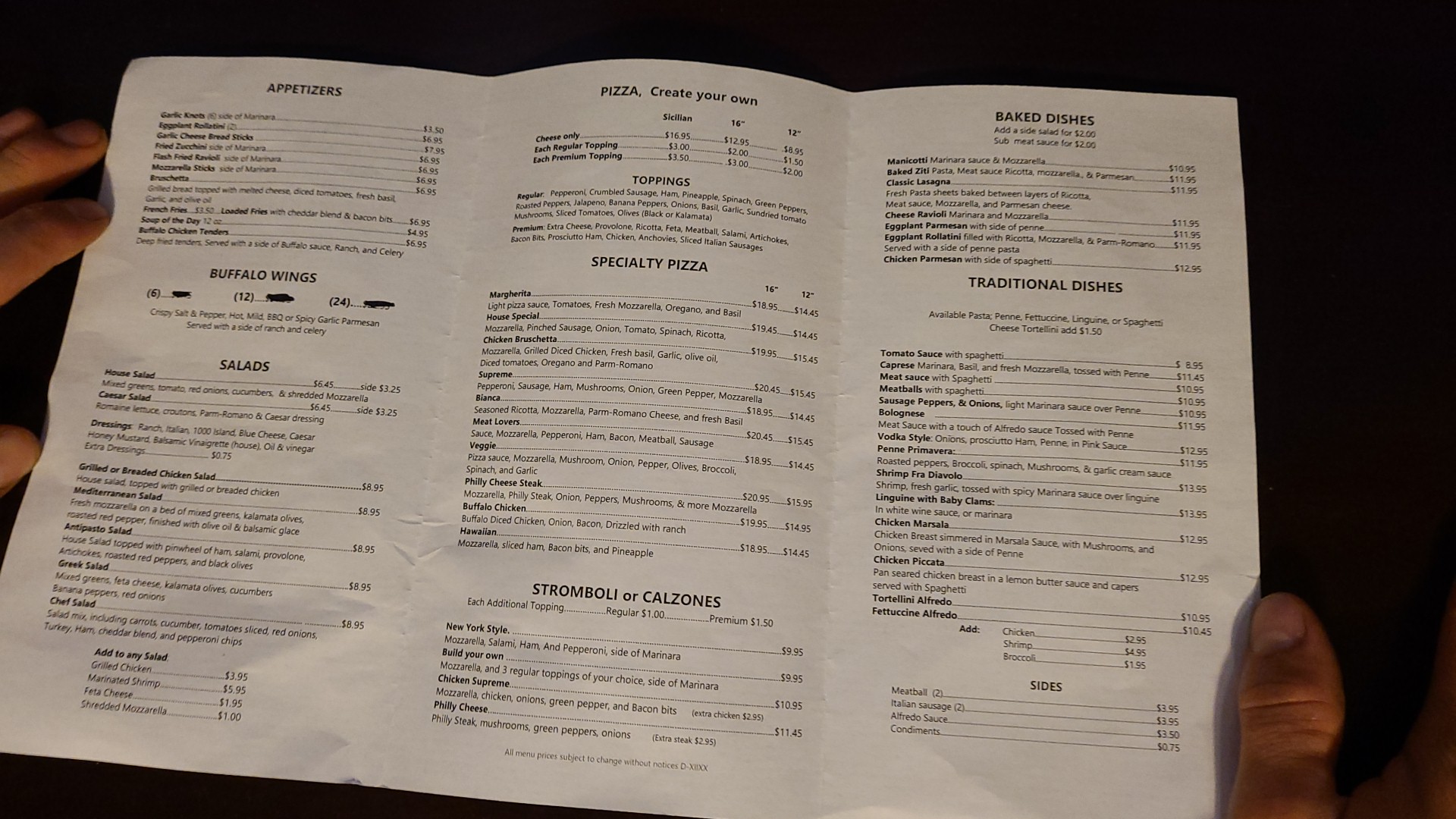 Not the greatest experience. I know we got there an hour before they closed. I got off from work late. So I am not sure if it had anything to do with it. Also the one waiter was working by himself. However, he forgot a few things and I had to ask. I ordered the manicotti and a side of meatballs. My meatballs came out first and not not with my meal, but the meal did follow quickly after it. The meatballs had a weird texture like mush and did not taste that good at all. I only ate part of one. I could not eat the rest of it or the other one. The manicotti was good. My son ordered 6 wings, a side cesar salad and a cheese steak pizza. The waiter forgot the curtons on my sons salad, Which he realized and took the whole salad back and rectified. I did not understand why he did not just bring out the croutons and had to take the whole salad back. I realized he also gave my son 12 wings instead of 6 when I saw my sons bill. My son said his pizza was watery. He hardly ate any of it. I also realized I never got any bread with my meal. When I asked for it, the waiter went to get some and just threw a few pieces of cold bread wrapped in tinfoil on the table. I have heard such great reviews about this place. This was our first time here. I dont know if just a bad night, it was the end of the night or it .was short staffed.. But my son says never again. I Kinda agee..we took the food home he did not finish, which was quite a bit. we hate to waste food, but now he is having 2nd thoughts about...