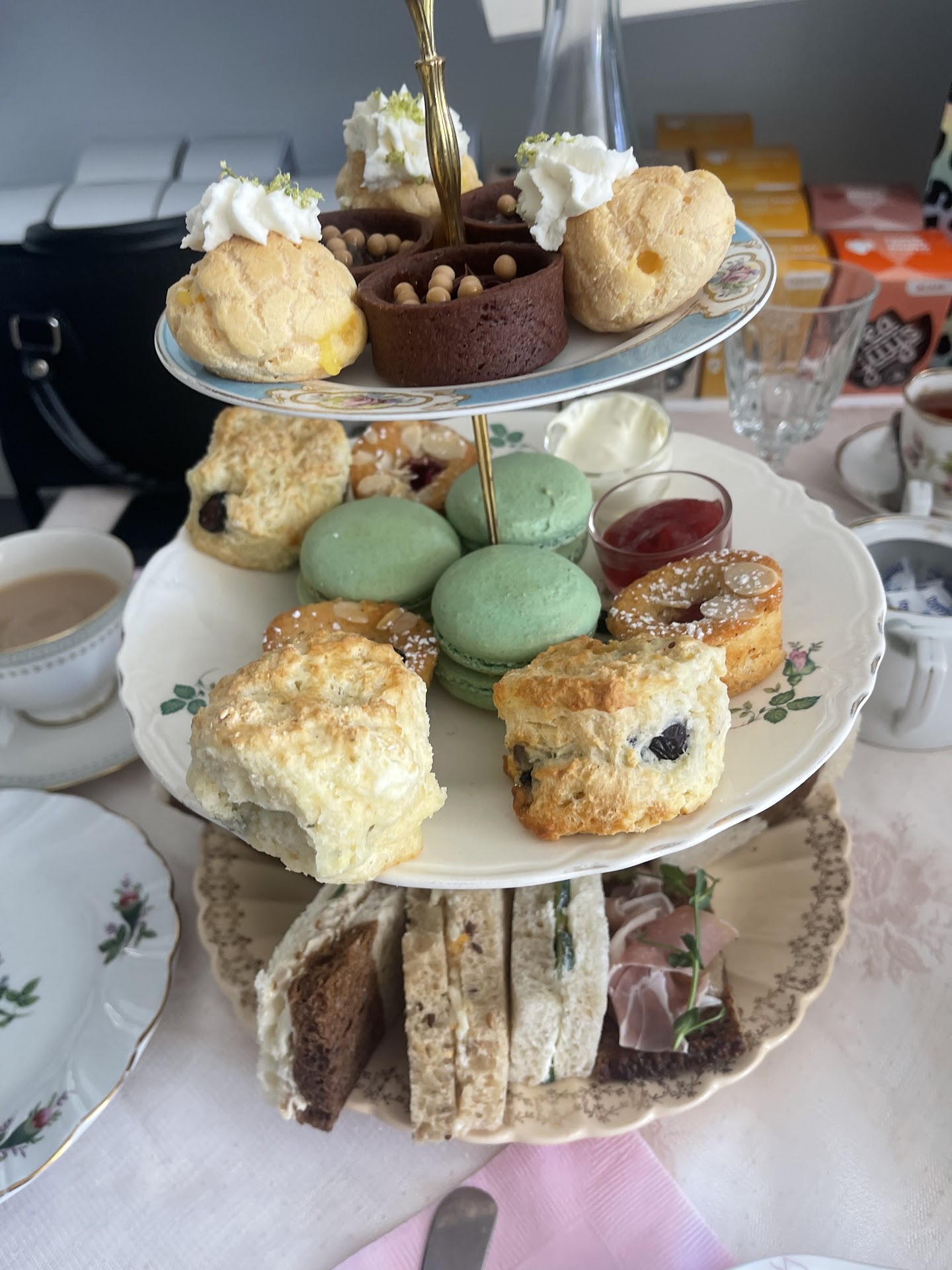 The food was mediocre at most. The madeleines were very clearly packaged from Trader Joe’s (!!), the brownie chunks cold and strongly suggesting having just being thawed. Little sandwiches were acceptable with sparse filling. Scones were quite good. For $60 there was not a lot of food at all. Like, I feel really cheated.