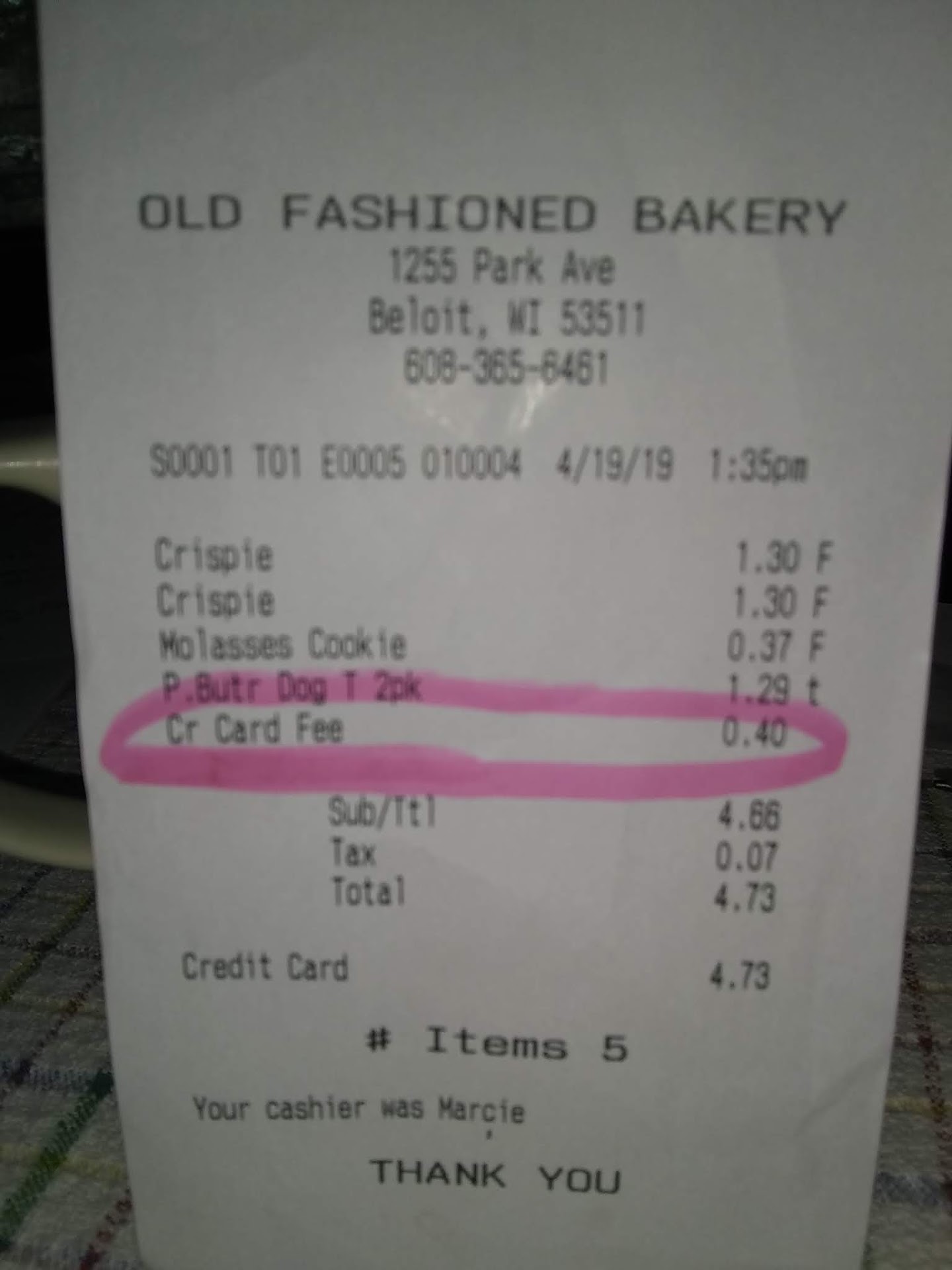 Now the one thing I did not know until I got home and looked at the receipt to add it to the check book was the credit card fee! OMG - I did not know they charged a fee and if I had been told this or saw a sign stating they charged a fee, I would have paid cash. It was only 40 cents but still hidden fees are a no no with me. Most places will tell you there is a fee to use your credit card/debit card. I will not forget this the next time we go.