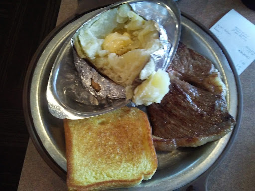 I ordered a sirloin with a baked potato. The sirloin did taste very watered down and it needed tons of A1 to make it edible. The baked potato was really good. I got sour cream and cheese from the baked potato bar.