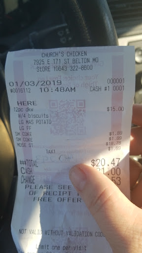 Read moreMight want to take a look at the type of people your hiring!! Our transmission blew right in front of this store the only place we could go because the car would not do anything but roll and we were able to get it in a space at the back of their lot. We went and talked to manager the day it happened and he said it could stay there. We had someone that was going to remove it later that night or next day, but they failed to let us know this for a few days. When we found out it was still there we called a tow company actually called five and the soonest anyone could get there was the next morning. So I let the store manager know this and he proceeds to tell me that he is going to have it towed at our expense and that the car is in their way. Mind you that lot is never ever full. We stayed in contact with them we had been trying to get the vechicle moved quickly, I am sorry that tow companies tend to have a 24hr wait and that the first person we had set up failed to communicate with us not our fault. Sorry show some human decency Churches I will never ever eat there after the way we were yelled at and told that they didn't care just get the damn car...