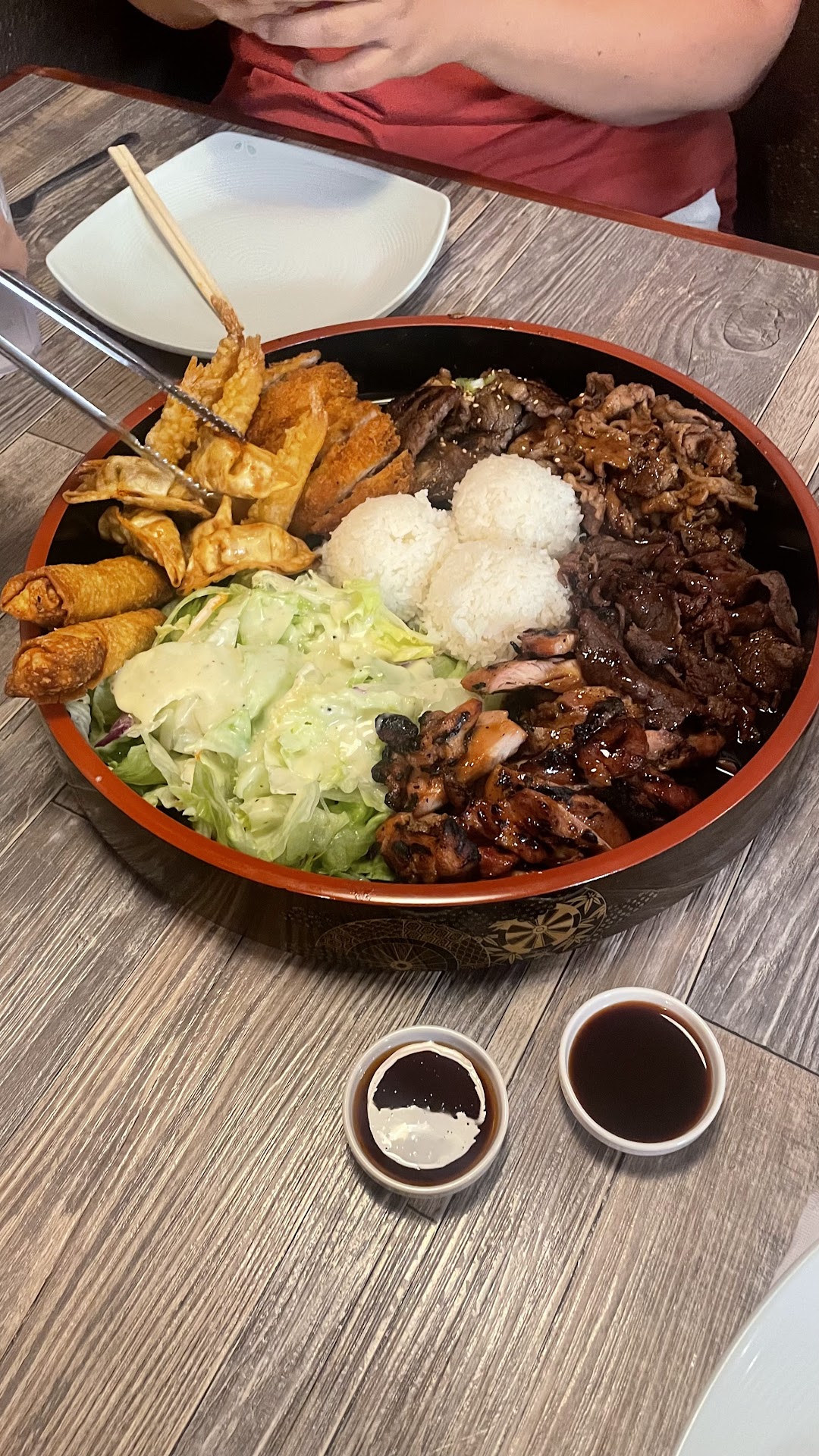 Read moreMy wife chose this place for dinner last night. I was skeptical at first. Looking at it from the outside was not too impressive, but all that faded away once we entered the restaurant. We were greeted by multiple employees. I immediately noticed the decor and the wonderful sound of silence. We sat at a booth and ordered drinks. I was very impressed with their extensive menu, so many options! As an appetizer, we had the Gyoza and Edamame. The Gyoza or dumplings were fried to a golden crisp and very flavorful. For my entree, I chose the spicy pork Bento Box. It was a wonderful sample of several items such as 4pc California roll, Miso soup (served prior to entree), 2ea dumplings, shrimp and veggie tempura, rice,and salad. The spicy pork was outstanding. It had a nice kick without being too much, and a tiny bit sweet. My family will definitely be back very soon and will recommend this place to all...