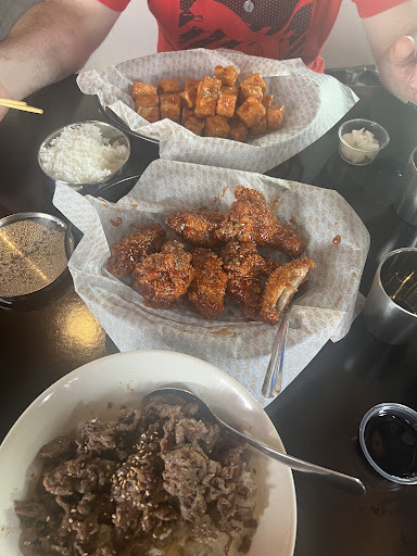 The first visit- got multiple flavors of the boneless Korean fried chicken and tofu, which were all delicious, as was the tteokbokki and bulgogi. Service was terrible. For a party of eight, we only got two bottles of water, and the waters were never refilled, even when they were empty (and had been for a LONG time). After the server came and took our initial order, she never came back to check on us. We actually wanted to order more food and had to flag someone else down to come over, but that person never brought over menus as requested. Finally, we had to have yet another person come over to check us out. It was also incredibly hot - I guess their AC wasnât working? - and none of the fans that they had were pointed at our table.