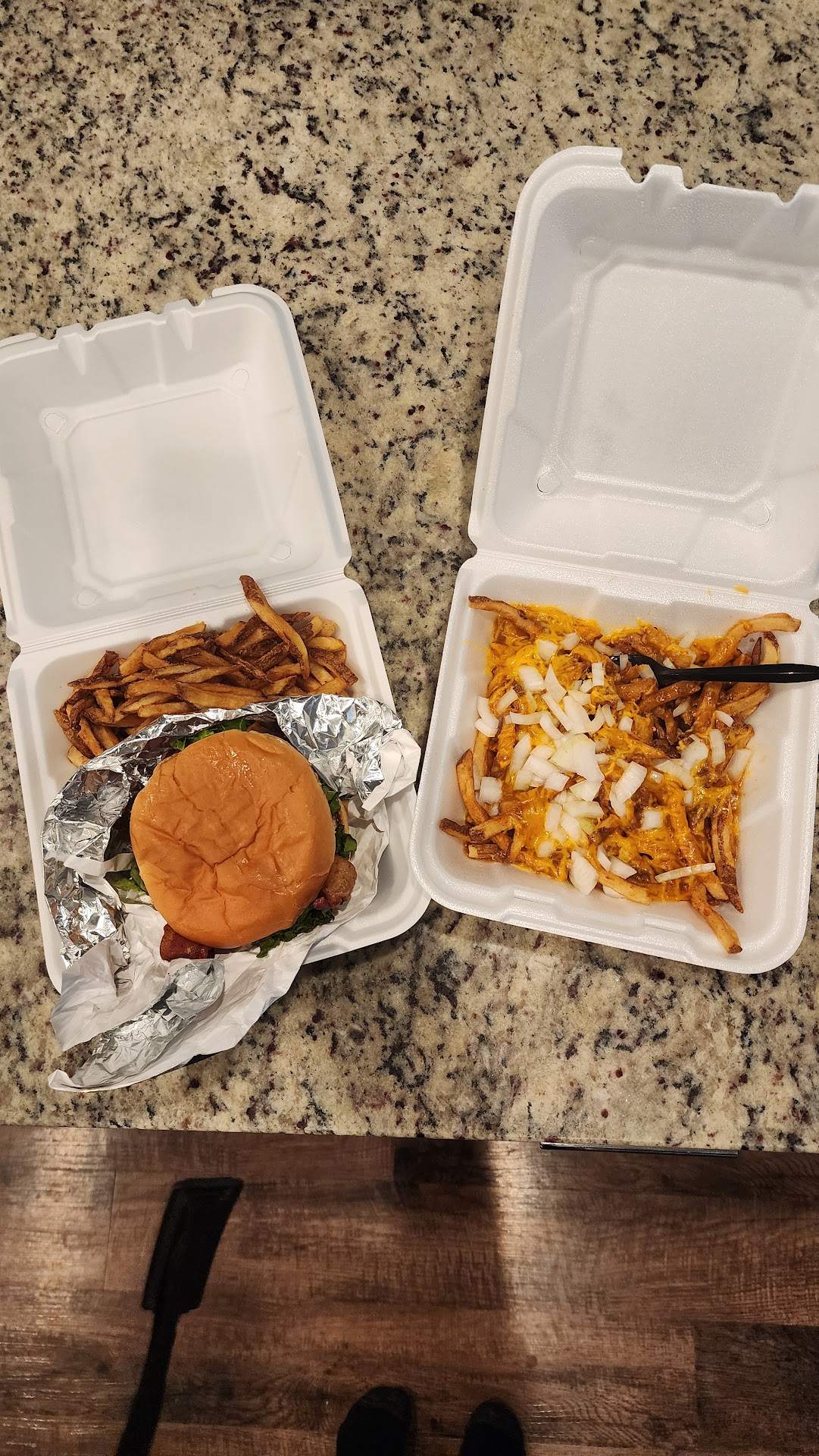 They have tables and umbrellas to sit at and dine. The staff are friendly and efficient. We Had: 2 Bacon Cheeseburgers with Fries. 1 Cowboy Burger with Fries. 1 Chicken Fried Steak Sandwich with Fries. 1 Fried Catfish with Hushpuppies and Fries. 1 Chicken Fried Steak Dinner with Mashed Potatoes, Gravy, and Green Beans. 1 Chili Cheese Fries.