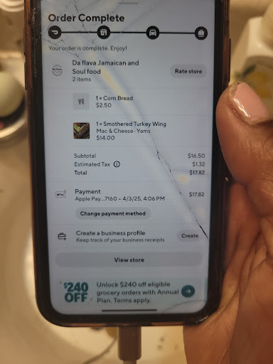 I do have a video of the incident. And I will be posting it on all platforms and we'll be tagging you in it. So you can see how unprofessional your young employee, yes. Just to piggyback on my post the data service. April 3rd I paid $17.82 on. 2 items. I had the smothered Turkey wing and corn bread it. It came with macaroni and sweet potatoes. I pay with apple pay. @4:06 PM the name. My order was under HoneyB I know what you're doing looking through your system.Trying to find my government name, but I ordered under my nickname.Now check that Here's a photo of my transaction on DoorDash. And here's the video...