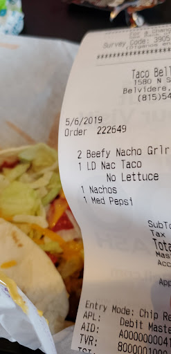 My family and I recently visited this Taco Bell in belvidere Illinois. Now before I go any further yes I know this is fast food, yes I also know not to expect much but thereās still a standard to uphold least I thought. So upon entering the establishment we were not greeted by or acknowledged by a worker but by a sign that said please use kiosk. There were two kiosks 1 of them was ācurrently unavailableā the other was malfunctioning and we found it hard to use. I tried to stand at the counter and was not acknowledged by any of the workers. My wife finally was able to submit our order of 4 luxe boxes and we went to sit down. When we got to our table we noticed that the overall cleanliness of the restaurant was not good. Tables were dirty, floor was not clean, and counters were not wiped down. As we waited conversations could be heard from the kitchen of which were not very appropriate. In the twenty minutes we waited to get our food we watched three different people try to come in and order at the kiosk get frustrated then stand at the counter and then just walk out. There were four cars that went through the drive thru also. This is just sad. Once we got our food 20 minutes later none of the boxes were labeled and we spent the rest of our meal playing burrito roulette. I am highly disappointed by the fact that Taco Bell has declined to give the customer any human interaction and has turned to computers. I am also concerned about the lack of service on cleaning the lobby. Overall this location deserves a surprise visit from a district manager. Shame on...