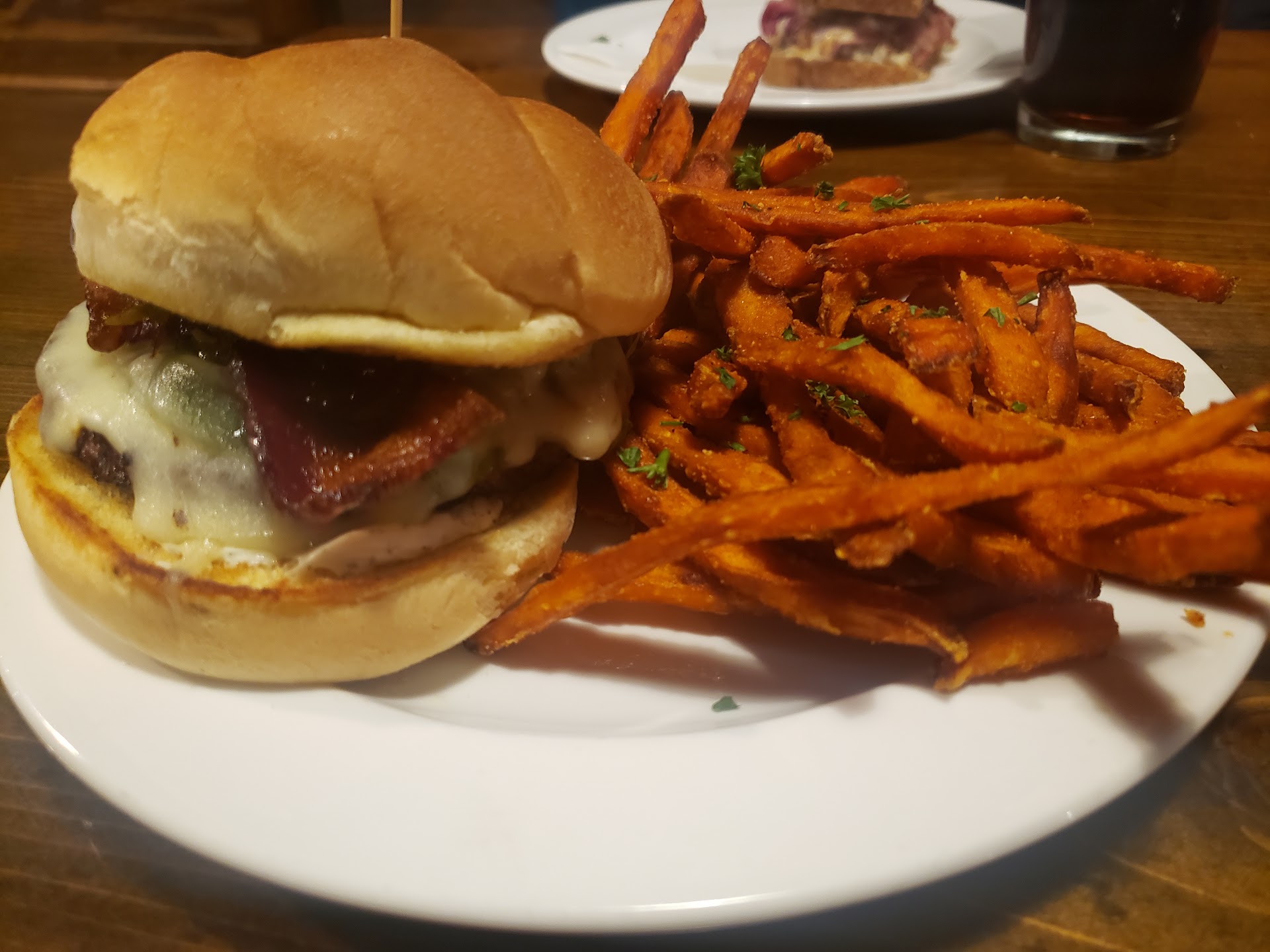 I'm sad that I just found this place now. All those amazing meals i could have had... I got the Dream boat burger with sweet potato fries. They gave a good serving of fries which I was glad to see. The burger had an amazing mixture of sweet and spicy. My wife got the Rueben sandwich which was good. She had a side of soup which was whiskey mushroom, and it had a unique flavor that I would get again. We ordered an appetizer of Irish egg rolls, and we highly recommend them. I only show 2 in the photo, sorry it came with 6 but we were a bit anxious to eat :) Will be back soon!
