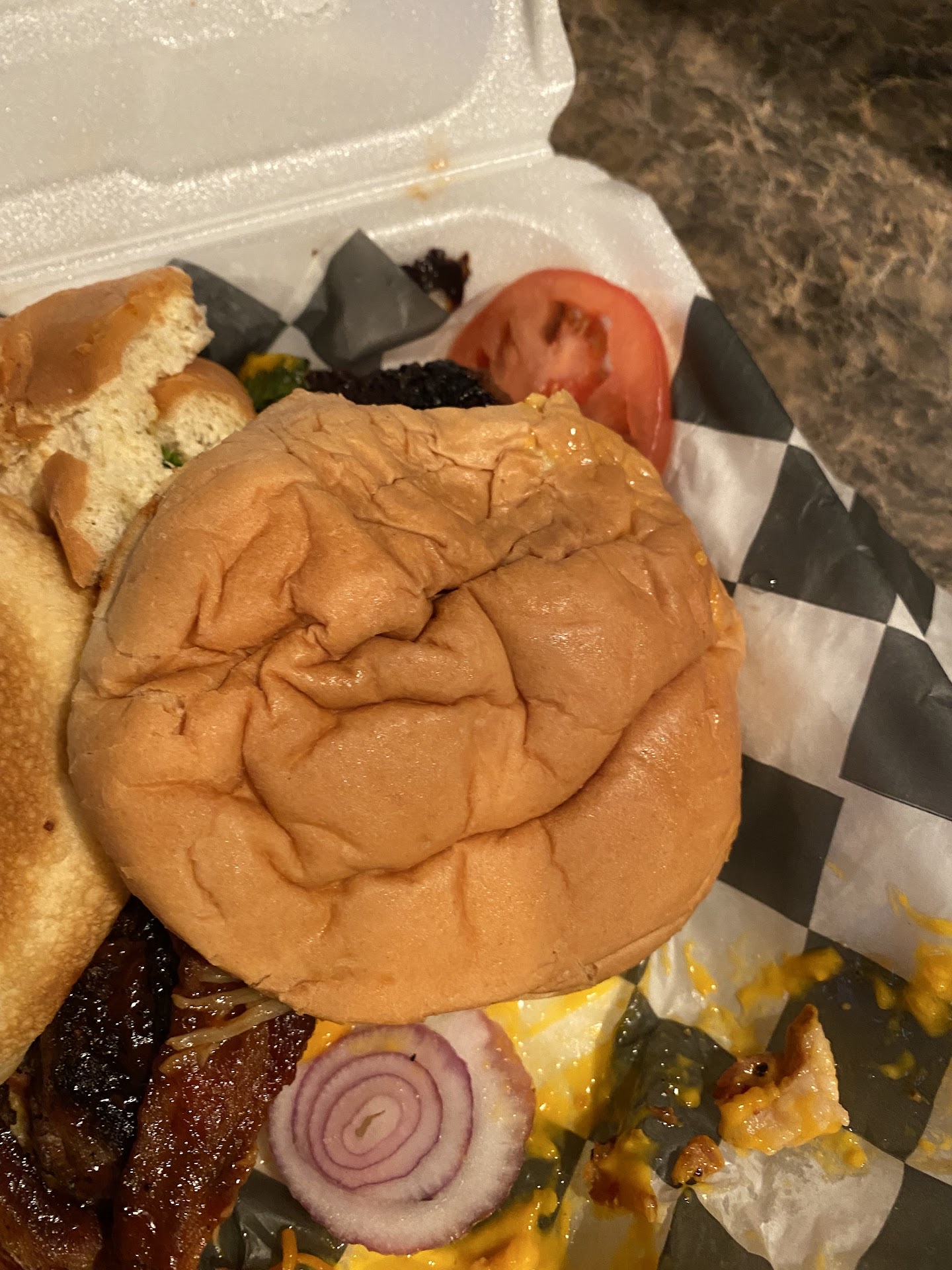 Burger was overcooked, bun was stale, and there was barely any mushrooms on the burger