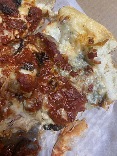 The Fettuccine Alfredo was similarly greasy but was finished with raw garlic and had that metallic and harsh flavor raw garlic imparts. As you can see in the photos, there was grease left over on the plates after finishing and the pasta is oil glossy.