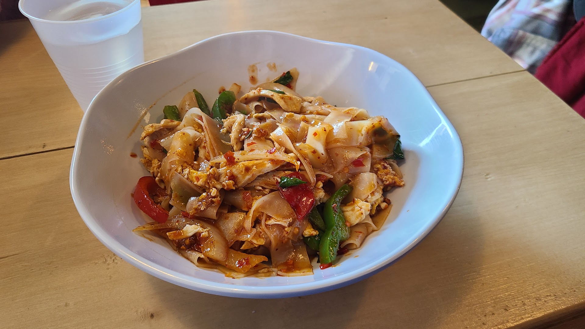 First, the food. Freaking fantastic. I will admit, I do not have a lot of Thai food experiences to compare to, but this is definitely authentic Thai. They don't throw an American twist into it to make it more acceptable to the uninitiated. The food will either be mild, or very spicy, as is traditional Thai. There isn't much in between. I've tried nearly every item on the menu, but the red curry and drunken noodle are hands down my favorite. The drunken noodle definitely needs a cold beer to wash down the spice, but oh so worth the pain.