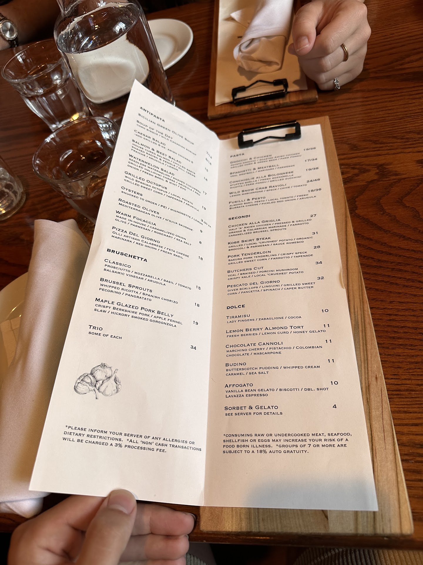 Then, afterwards, I had to separate from my party so I could slink off to another restaurant to get adequate calories to feel like I’d had a balanced enough meal to sleep that night. Others in my party arty orders pizza within 2 hours to fill the void. We spent well over $200 for 3 people.