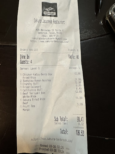 I ordered the Tonkatsu ramen, which is what I had gotten last time that was really good. Unfortunately no options for spice other than sriracha, which was okay. Iām not going to bash the store for that. The ramen wasnāt great. There was so much seaweed it was unbelievable. Donāt get me wrong, I love seaweed in my ramen but there was SO MUCH it made it taste like I was eating out of a fish bowl. I spent about 2 minutes just picking it all out, which was enough to cover my entire napkin. The bamboo had a really gross flavor, the eggs were actually pretty good, and the pork wasnāt bad but Iāve had a lot better. The broth was pretty bland, and usually if all else fails, your broth should be tasty. The noodles were a bit overcooked. The presentation wasnāt really great either, certainly nothing like any of the pictures or from the reviews already on here. Just a mess overall. You would think with the title being Sakura Sushi AND RAMEN, that ramen would be just as important as the sushi. But the ramen tastes and was presented like it was cooked by someone who doesnāt know how to make it. And thereās only 3 main options with not much customization.