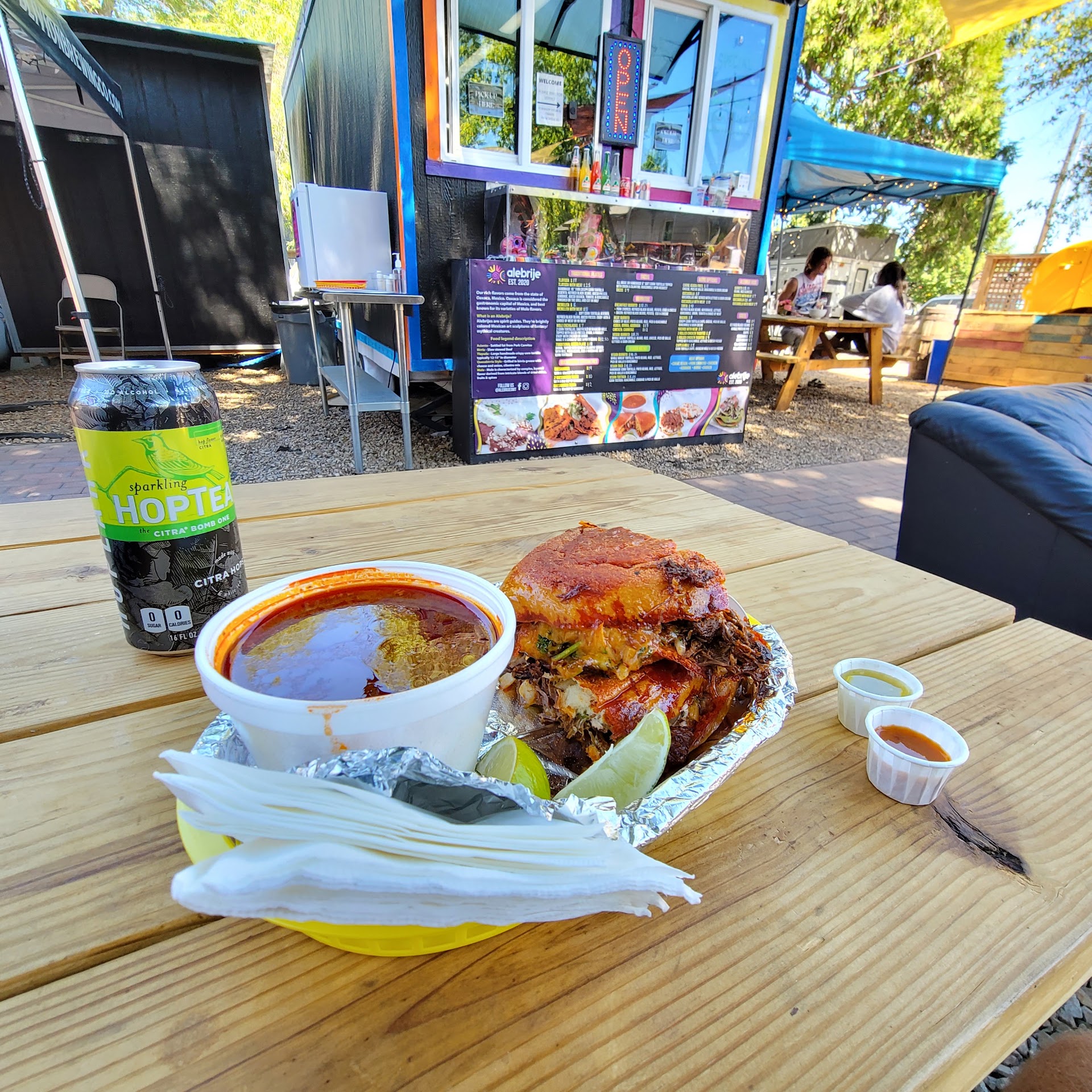 Read moreLove At First Sight!......... Nestled behind one of Bends quaint little hostels, Bunk & Brew, is Alebrije Oaxaca. While not much to see from the tight alley parking lot out back, as you round the corner into the courtyard pops out this gorgeous, multicolored, almost psychedelic scene of figures in a case. They are known as Alebrije or spirit guides and man did the spirits guide me to the right place! Once I was done admiring the culture being presented I move on to the menu. There are a plethora of offerings that all sounded very delicious and I was having a hard time making up my mind what to try for the first time so I asked if they would surprise me... What came out was beyond my expectations! A crispy bright orange QuesaBirria Torta, Toasted bolillo, shredded beef, cheese, sour cream, onion and cilantro with consome a couple of limes and a green and red hot sauce. This was a well made torta, the consume was rich and abundant with spices. The green sauce had a nice balance of tangy, salty, very mild heat while the red sauce packed a good little punch with a quick fading heat allowing you to keep going. All of the orders coming out were hot and steaming and it was easy to catch a whiff in the air from the kitchen and smell a thick aroma of Oaxacan style Mexican food! Pricing was very good and there are plenty of options on the menu to keep you coming back for more. There is a really neat vibe in the courtyard at Bunk & Brew where Alebrije...