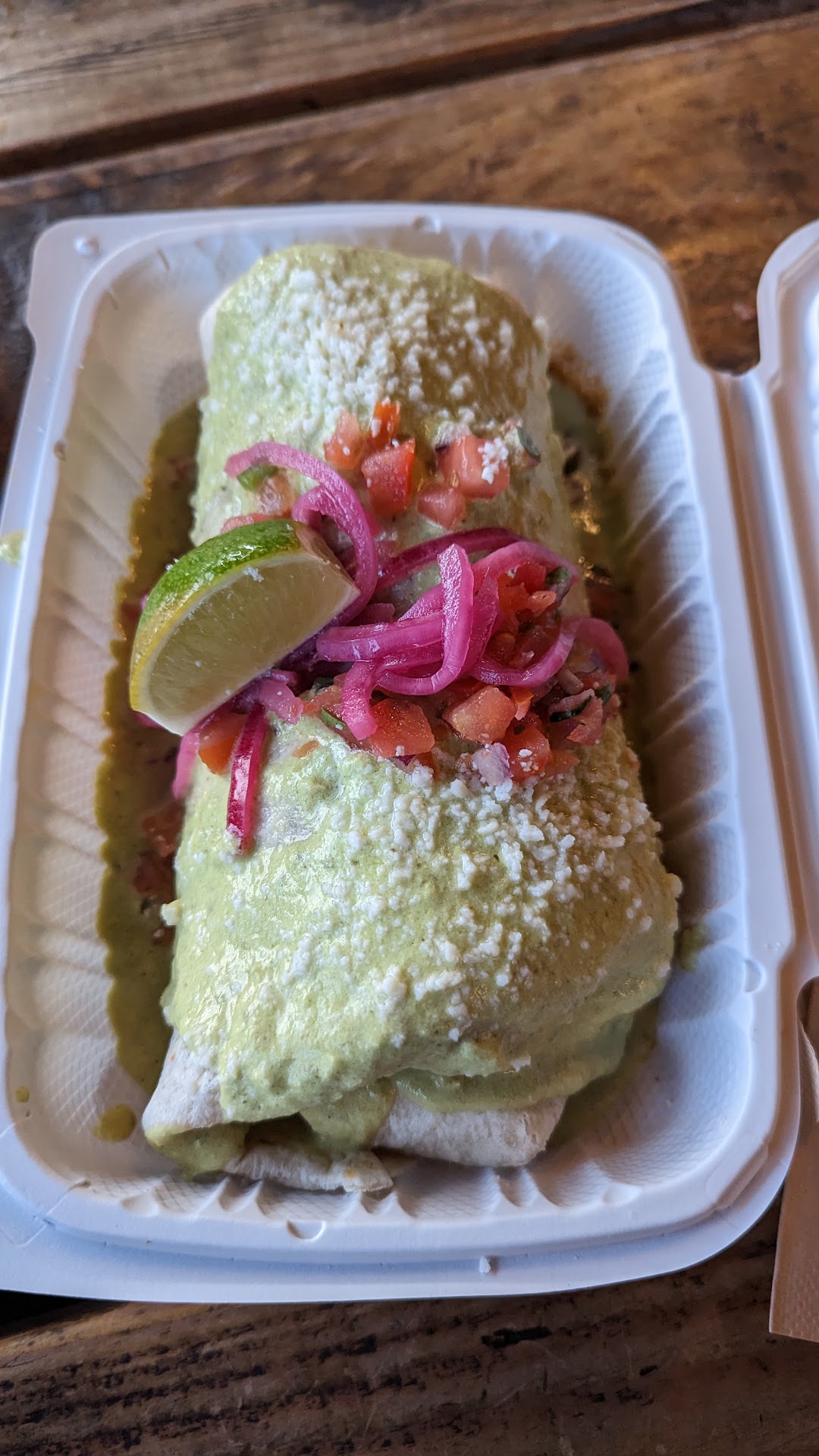 Read moreThis has got to be one of my new favorite Mexican places. It is a food truck not authentic Mexican but very close and easily the best burrito I've had in a long time. I didn't want a wet burrito so I specifically asked if he could just do regular and of course they could. Whatever the chicken is cooked in makes this what it is in my opinion, the queso was amazing as well. Didn't come with guac or sour cream so that's the only downside but you can definitely ask for it on if you want. My girlfriend got the enchiladas with chicken as well and she has always preferred authentic enchiladas but she says this comes in a very close 2nd. Green chile sauce was amazing. This has to be the best Mexican food cart I've ever tried and I would highly recommend it to anybody who is having a tough time deciding what to get. They were super fast and had the food out in about 5-10 minutes and also have been rated the highest cleanliness by health inspectors which is a plus....