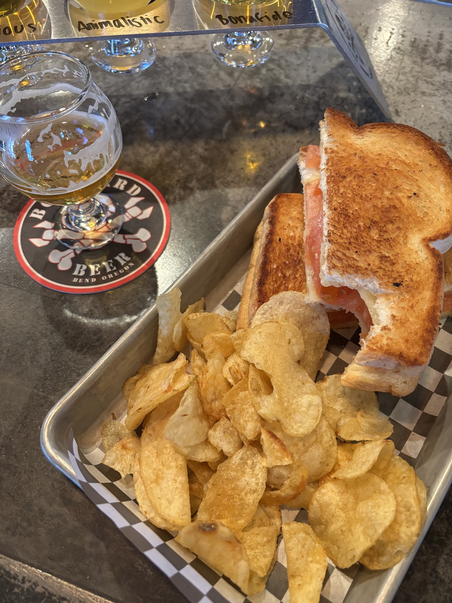 At the helm of this madness is Parker, the bartender, the operator, the enabler of your better instincts. Smooth as a snake oil salesman and twice as useful, Parker doesn’t just pour drinks—he sets the mood. He handed me a Crooked Pilsner so crisp it felt like a reset button for the nervous system. And before I could beg for another, he offered the sacred path: the growler to go.