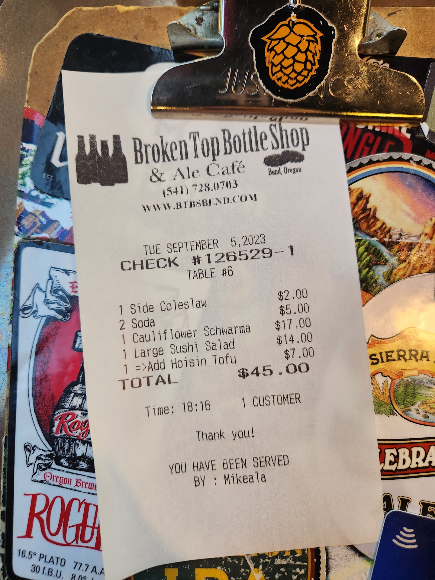 Read moreMy husband and I wanted to try this place because they had several vegan options. We sat out on the patio because it was nice outside. I ordered the hoisin tofu bon me and my husband ordered the Tempe Ruben sandwich. The server mentioned that they were out of the dikon radish for my sandwich, which I was okay with. When the food came there was no other vegetables, it was supposed to have cucumbers, carrots, Thai basil and cilantro. My husband didn’t get what he ordered. The Tempe Ruben ended up being the Tempe BBQ sandwich.