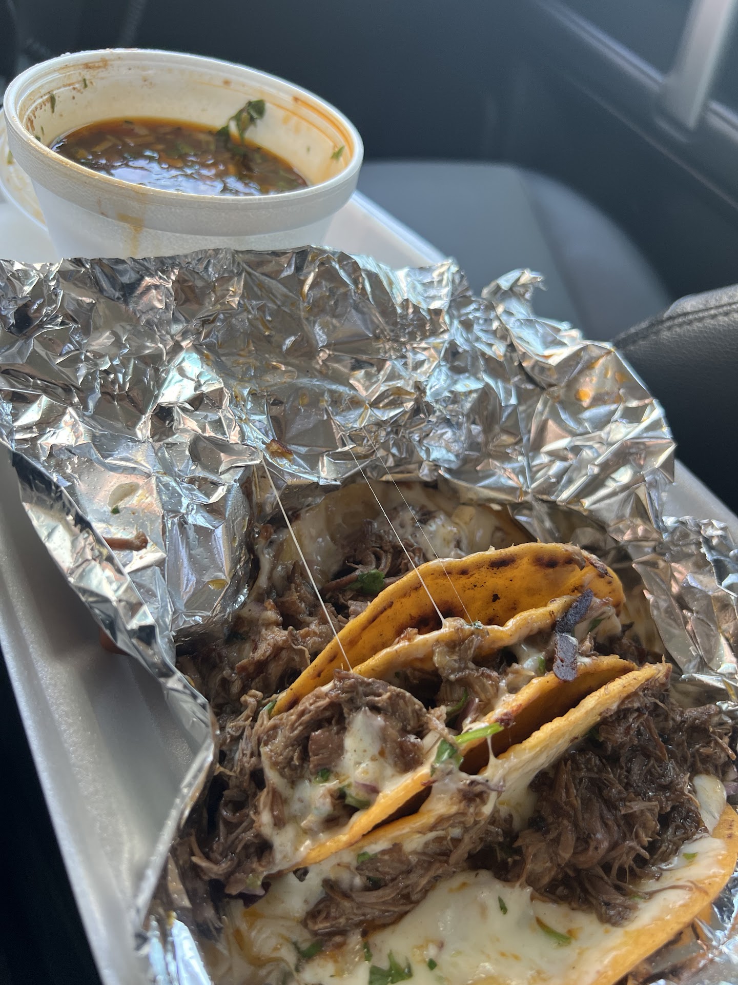 My favorite tacos are Al Pastor, and Im telling you, I NEVER find anyone who does them right, unless I just go back home to the south. My family got the pollo quesotacos, I got the pastor taco and quesotaco with Consome and a Mulita.