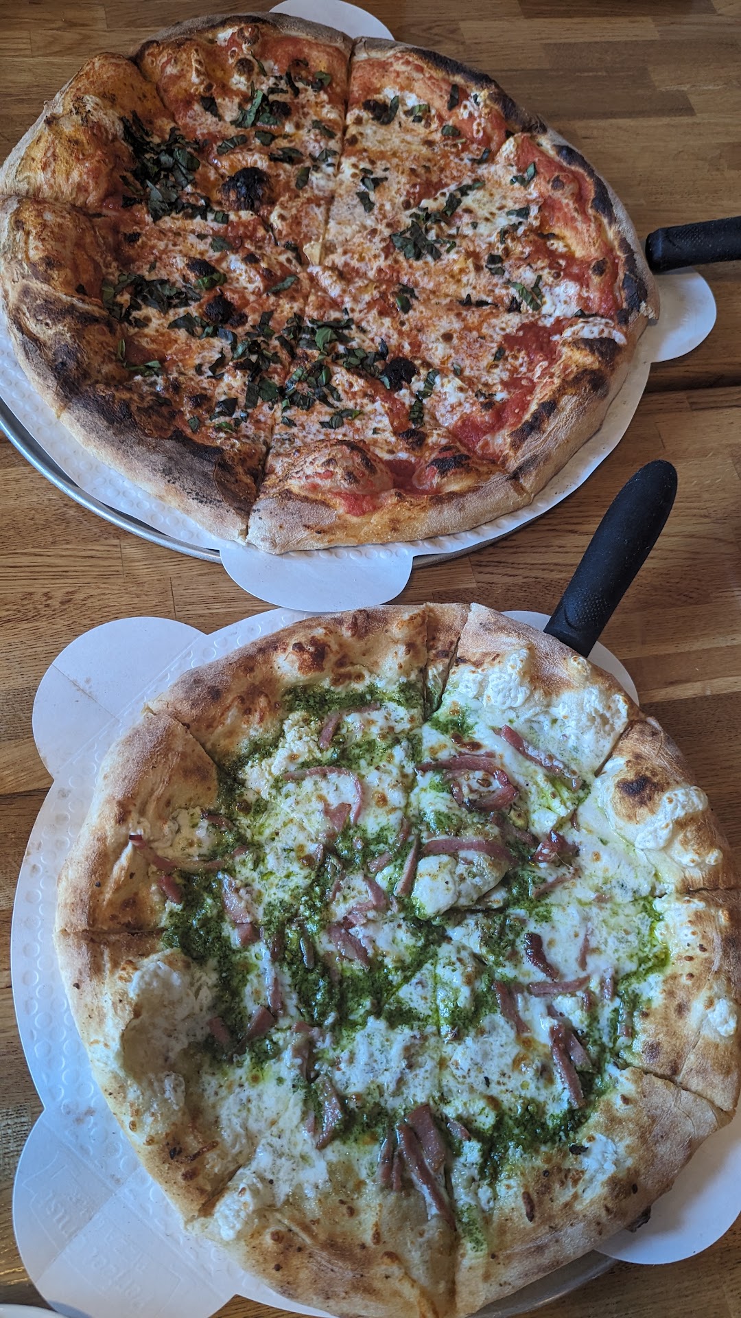 This pizza is fantastic! Specifically the crust. Absolutely no complaints on toppings and sauce. I’m not going to beat them up like a jackass for a few black spots on the bottom or for the pizza appearing limp when held in hand. They were super overwhelmed last night and we ended up waiting quite a while for our to go order. They ended up buying us a beer while we waited which was really nice. Our order did get goofed up a bit and we got 1 large and 2 small pizzas when we ordered 2 large and 1 small. Didn’t even realize this until we returned home 🤦🏼♂️ I called the store and the call went straight to vm (assuming that was because they were overloaded with calls and orders as it was). I left a message regarding the situation and hoping to hear back today sometime. It sounds like they’ve been open for less than a month and are still working things out logistically. If you give them a try, keep this in mind and be patient and kind if you have to wait longer than expected. And if you know what’s good for you, confirm your order before leaving the store with it! Atmosphere was lacking a little bit but again, they just opened so they get a free pass. Maybe paint the wall behind the tv or something so it’s not shockingly bright white. Regardless, I can’t wait to return next...