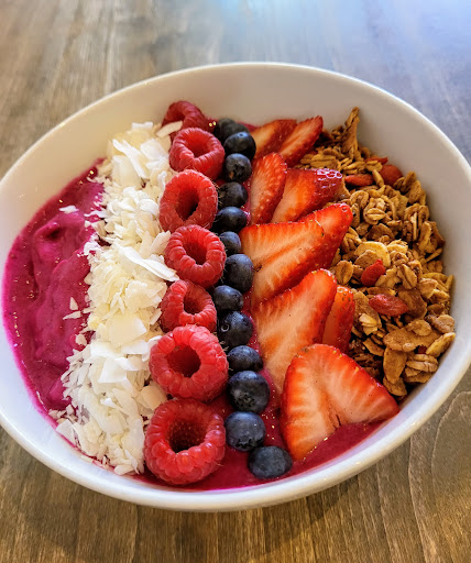 The Very Berry Smoothie Bowl had strawberries, raspberries, bananas,coconut milk, and goji granola.