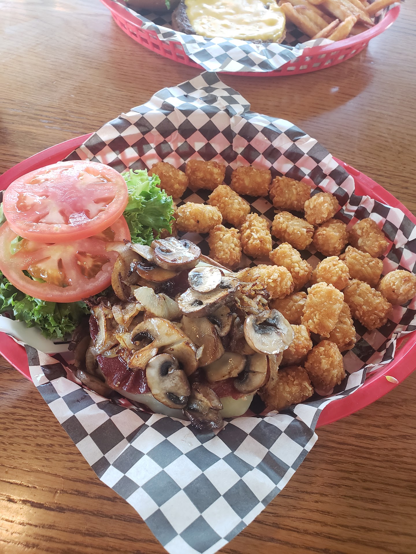 Read moreI see some reviews on here complaining about prices and the quality of some items on the menu, so I felt compelled to write a review. The pictures I've attached are actual pictures of my daughter's and my meals. I can't speak on any other menu items, but these burgers were great. The patties are not huge, but they are totally fine. The quality of the burger, and the freshness of the the vegetables, and mushrooms were outstanding. The tots and fries were cooked to perfection, crispy, but not greasy. I think we paid around 15-18 dollars/each, but this came with what you see pictured, and unlimited drinks. To me this is not unreasonable at all considering what fast food places charge these days, most of the time that food is terrible. I happened to meet one of the owners by happenchance, and we chatted just briefly, and after ordering our food she told my daughter and me to pick out any milkshake on the menu and that it was on the house. I tried to refuse but she insisted. My daughter got a chocolate milkshake that was delicious.