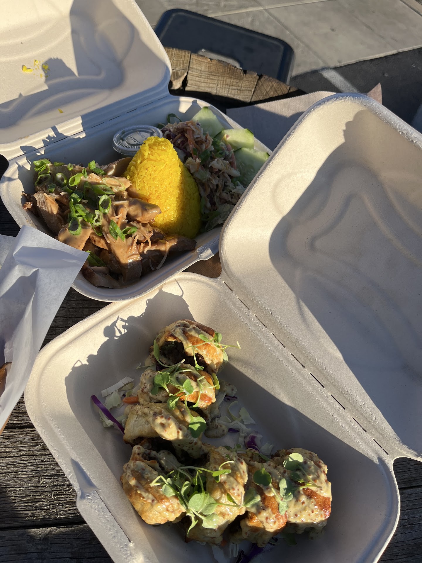 We finally made it to IndoDaddy for lunch after many months of swooning over their Instagram posts. We had hopes and dreams of what a Dutch-Indonesian meal may taste like and were blown away by the flavors and presentation of each dish. We had the chicken sate entree- the chicken was tender and coated in a yummy, warm peanut sauce. Normally âriceâ in a plate dish is an afterthought- this turmeric coconut rice is 100% a stand-alone dish. We had corn fritters (must have!!) and egg rolls. Our tastebuds were buzzing in the best of ways from the owners grandmotherâs recipe for a green side sauce. If youâre looking for a culinary adventure - donât sleep on this one. This is an absolute hidden gem in Bend (located in Bevel Brewing at the time...