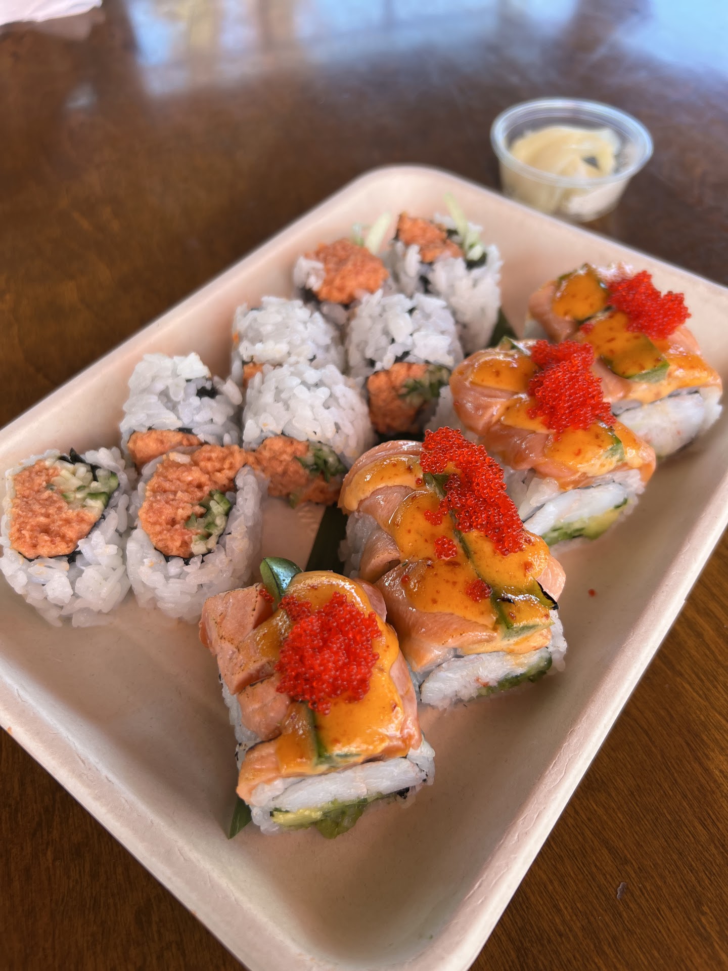 I am a regular customer for years. They always seems to have an issue giving you ginger with the rolls. I ordered 3 rolls tonight to go. The girl does not give you ginger, you have to ask for it. I do not like the rolls without ginger. She gave me one small plastic container of ginger, enough for 1/2 a roll. I tell her I want 3 because I have 3 rolls, paid 46.25. She said NO! only one! I said I need 3 and she said I give you 2, that's all! I said I want 3 and she said that at restaurants ginger is served in 1 bowl. ??? Not sure what that means, considering this is a food truck and I tip them like I am at a restaurant. I told her. I will not be coming back. She finally gave me a third ginger. She totally annoyed me and I won't be returning. Paying restaurant prices from food carts that provide no service and then having to demand ginger for a roll is absurd. Their rolls are Ok if you...